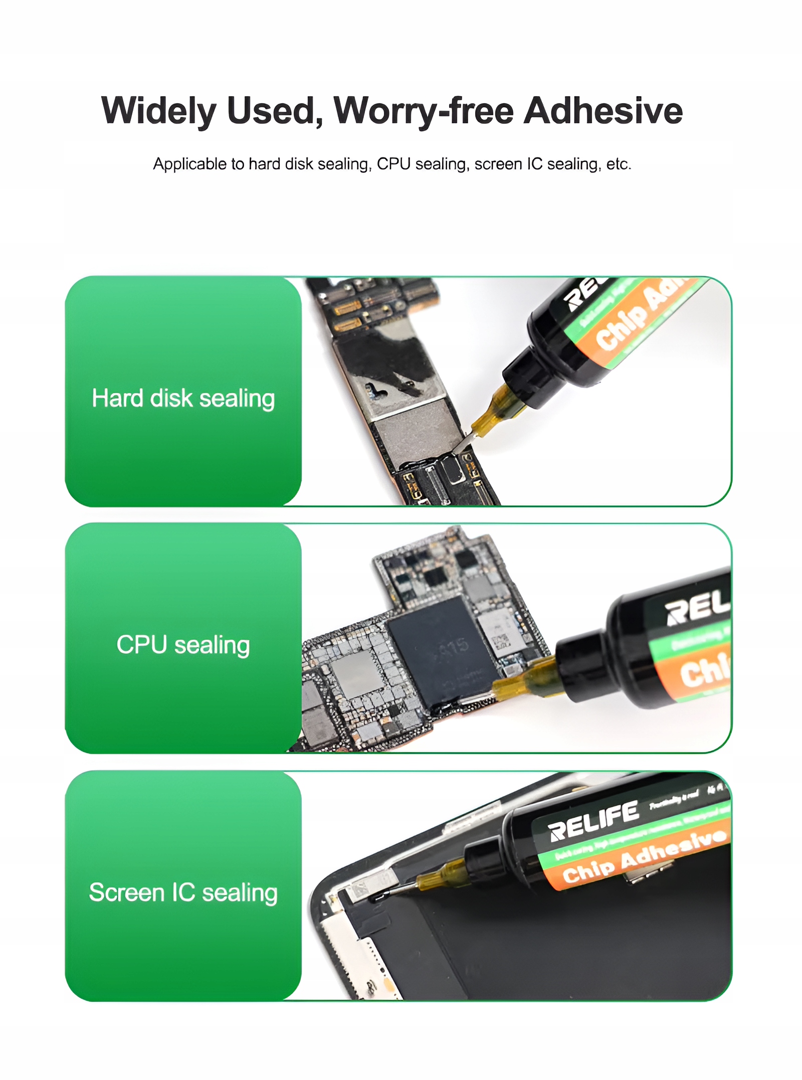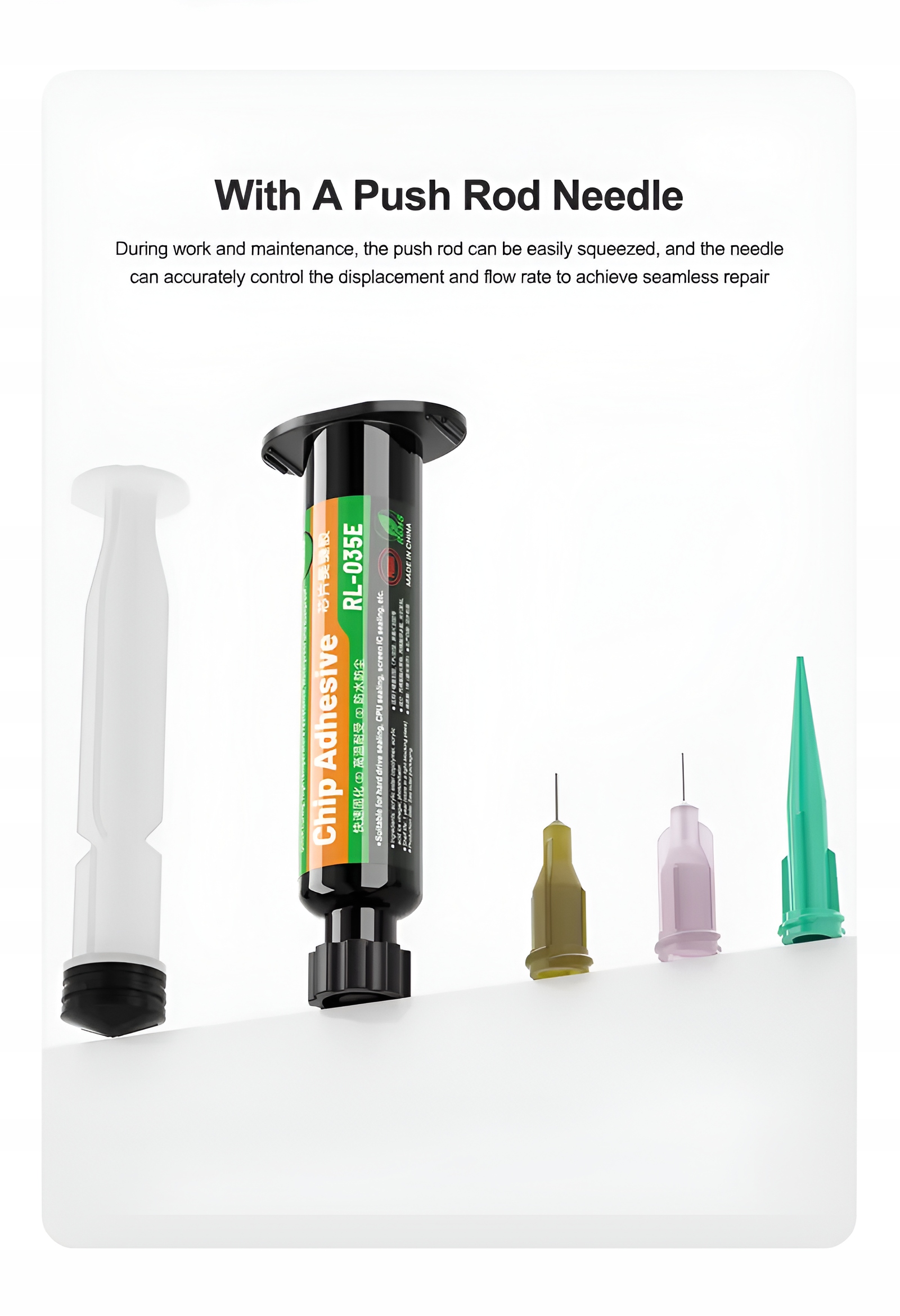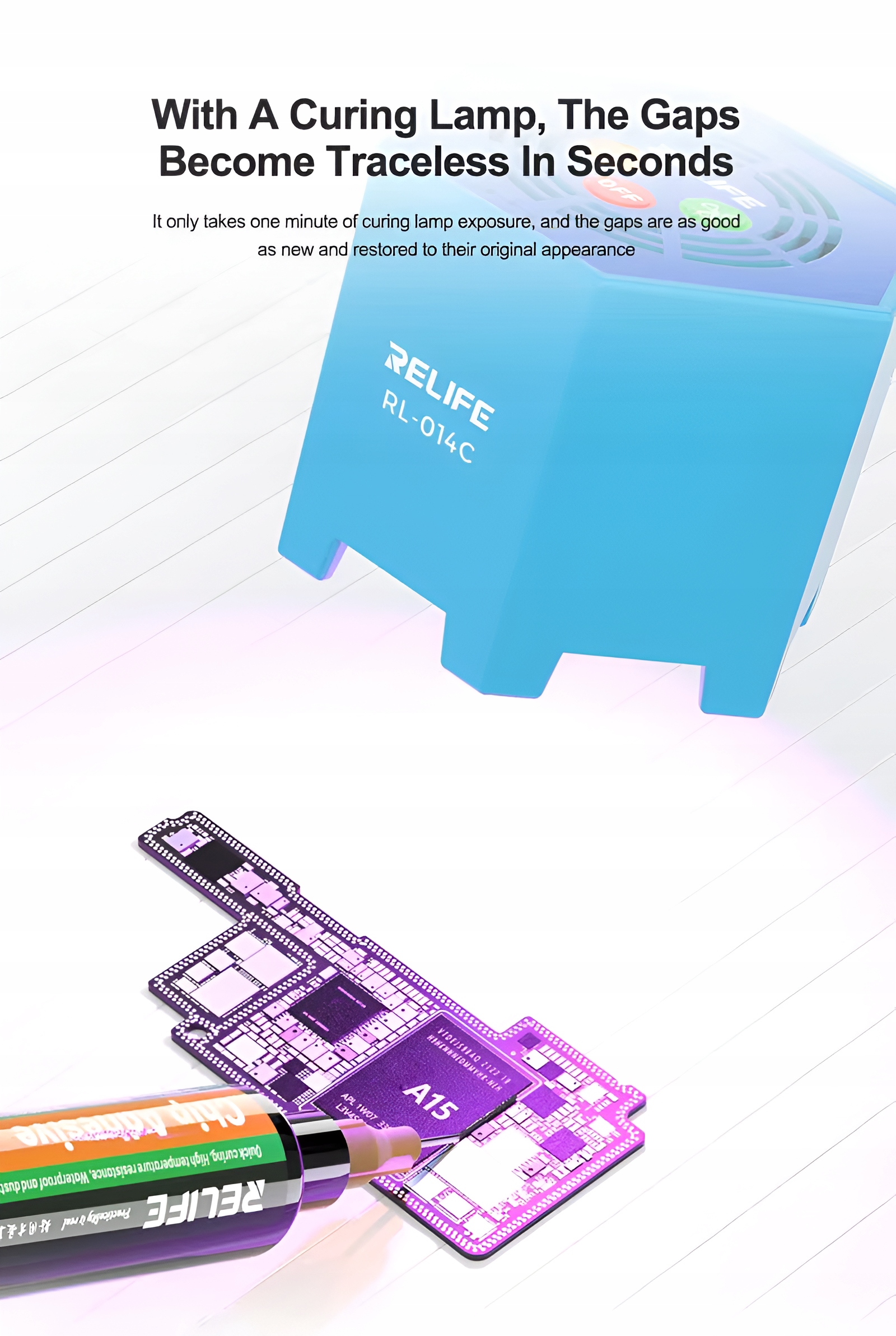 RELIFE RL035E to klej montażowy do klejenia układów BGA do płyt PCB utwardzany za pomocą światła UV.