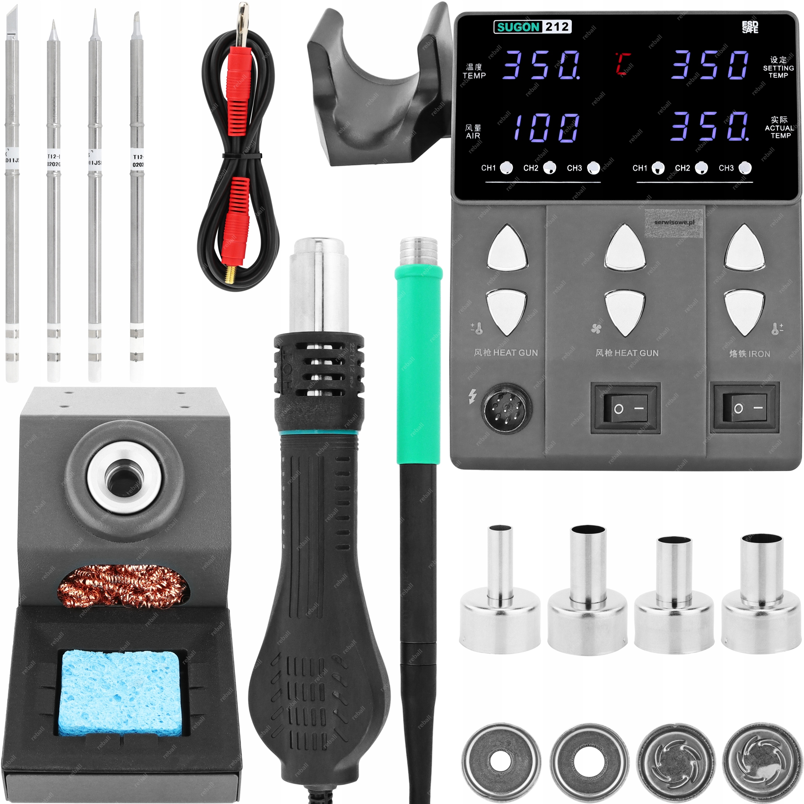 STACJA SUGON 212 760W - SOLIDNY HOT AIR + LUTOWNICA PRECYZYJNA GROTY T12 4X