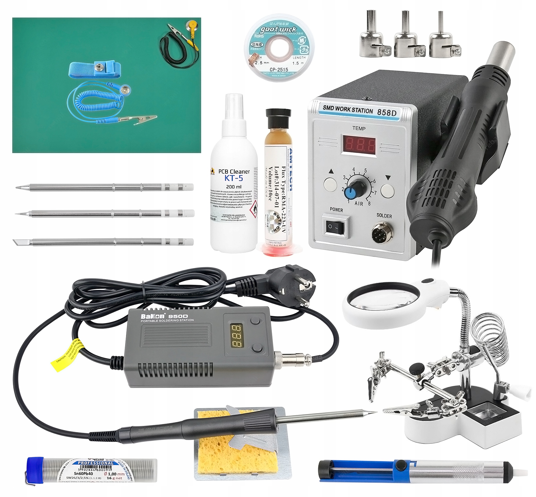 STACJA LUTOWNICZA HOT AIR 858D + LUTOWNICA PRECYZYJNA BAKON 950D +AKCESORIA