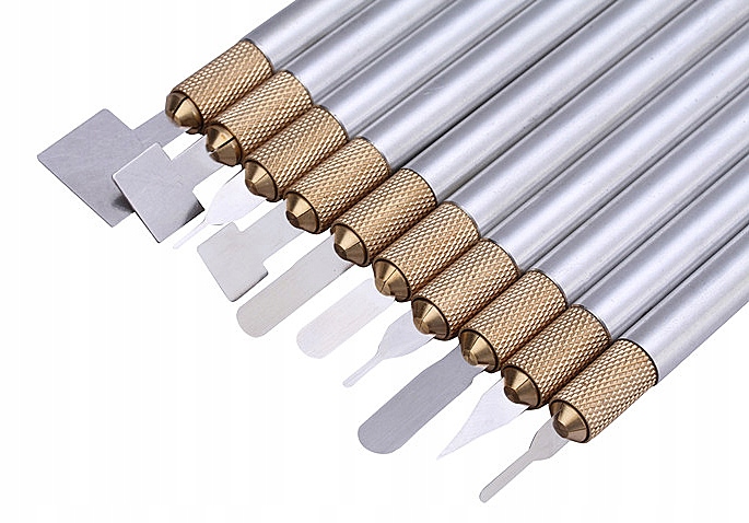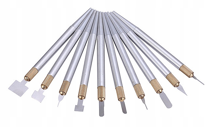 Przedmiotem sprzedaży jest zestaw 10szt precyzyjnych końcówek i ostrzy do skalpeli W110 przeznaczony do separacji i podnoszenia układów BGA, SMD, CPU z PCB bądź nakładania pasty lutowniczej przez szablony BGA.