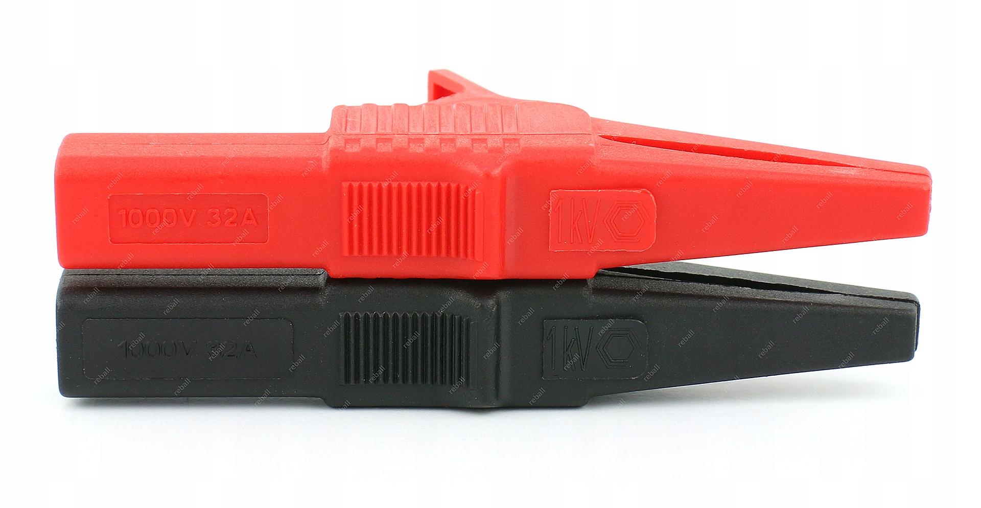 Końcówka pomiarowa - izolowany krokodylek pomiarowy (zacisk krokodylkowy) zakładany na przewody pomiarowe zakończone wtykiem bananowym 4mm.