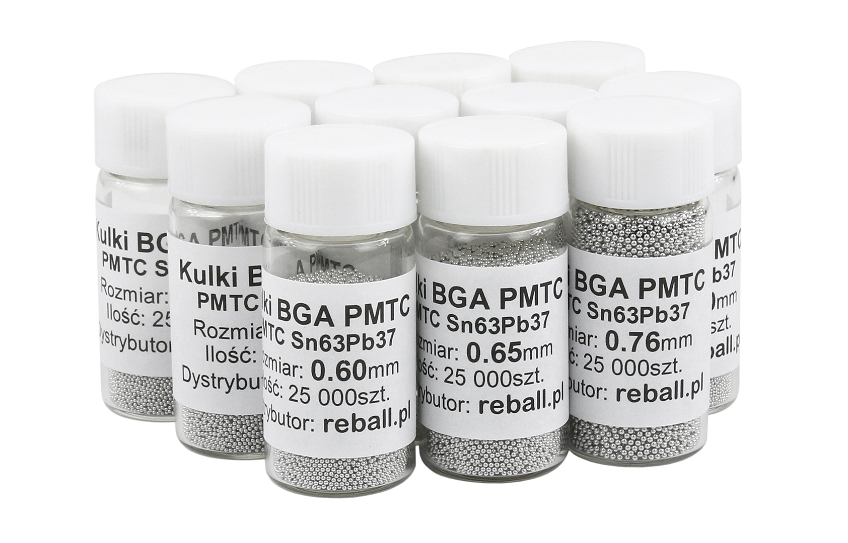 Skład kulek: cyna - Sn 63%, ołów Pb 37% (kulki ołowiowe). Kulki produkcji PMTC.