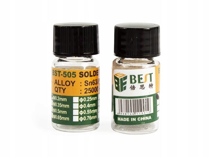 Skład kulek: cyna - Sn 63%, ołów Pb 37% (kulki ołowiowe). Kulki produkcji PMTC.