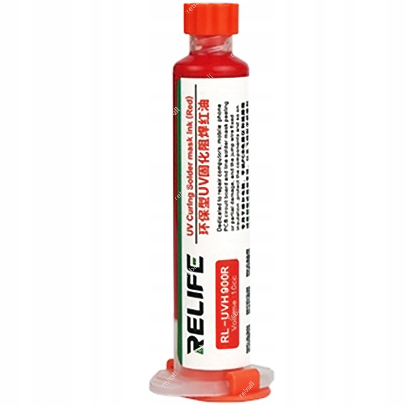 Relife RL-UVH900R to specjalna farba/lakier do stosowania w procesie lutowania, która jest w stanie utwardzić się pod wpływem promieniowania ultrafioletowego. Farba ta posiada kolor czerwony, co pozwala na łatwe odróżnienie obszarów pokrytych farbą od tych, które nie zostały jeszcze pokryte.