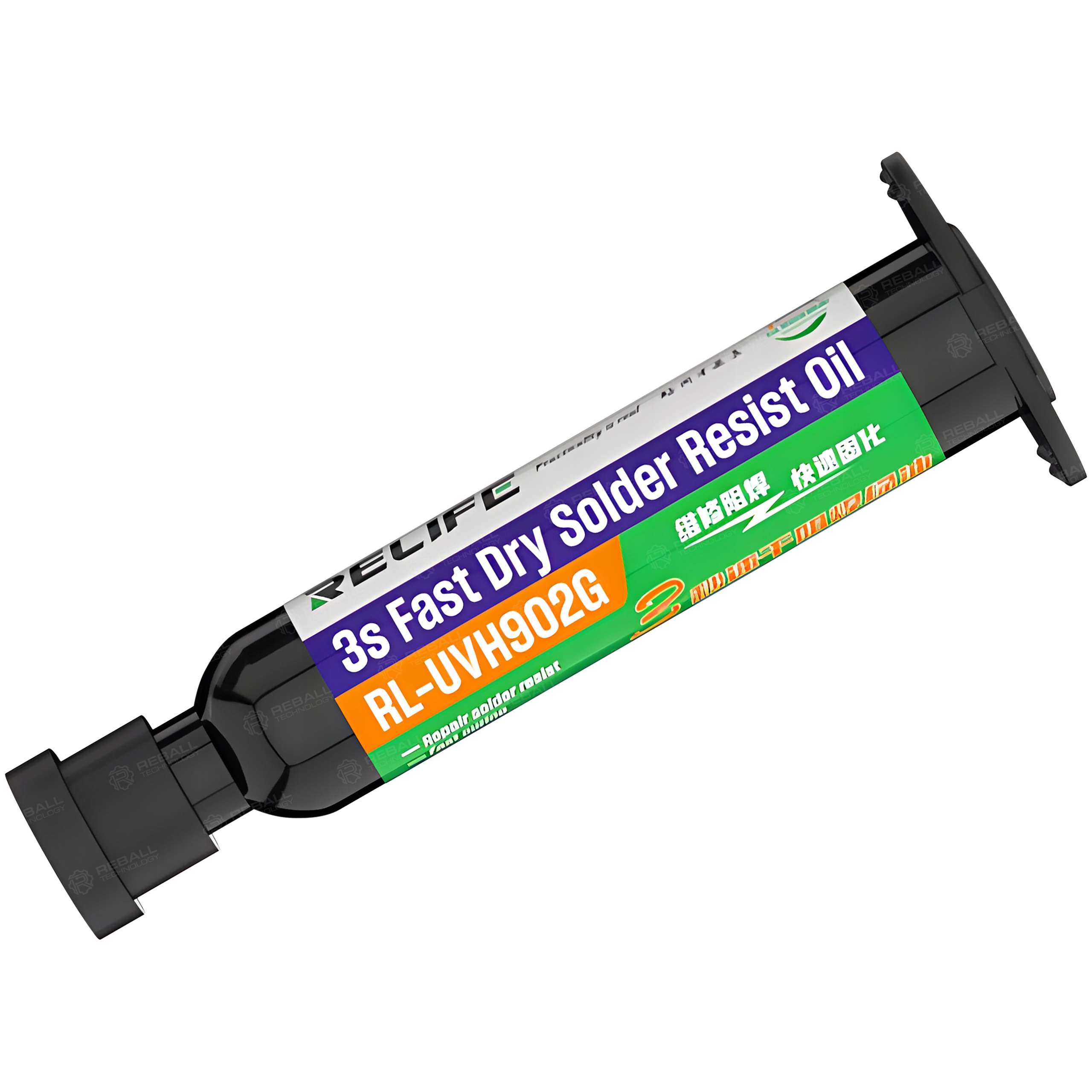 RL-UVH902 w kolorze zielonym to szybkoschnąca soldermaska do napraw płyt PCB, połączeń typu jumping wire oraz zabezpieczania miejsc po lutowaniu.