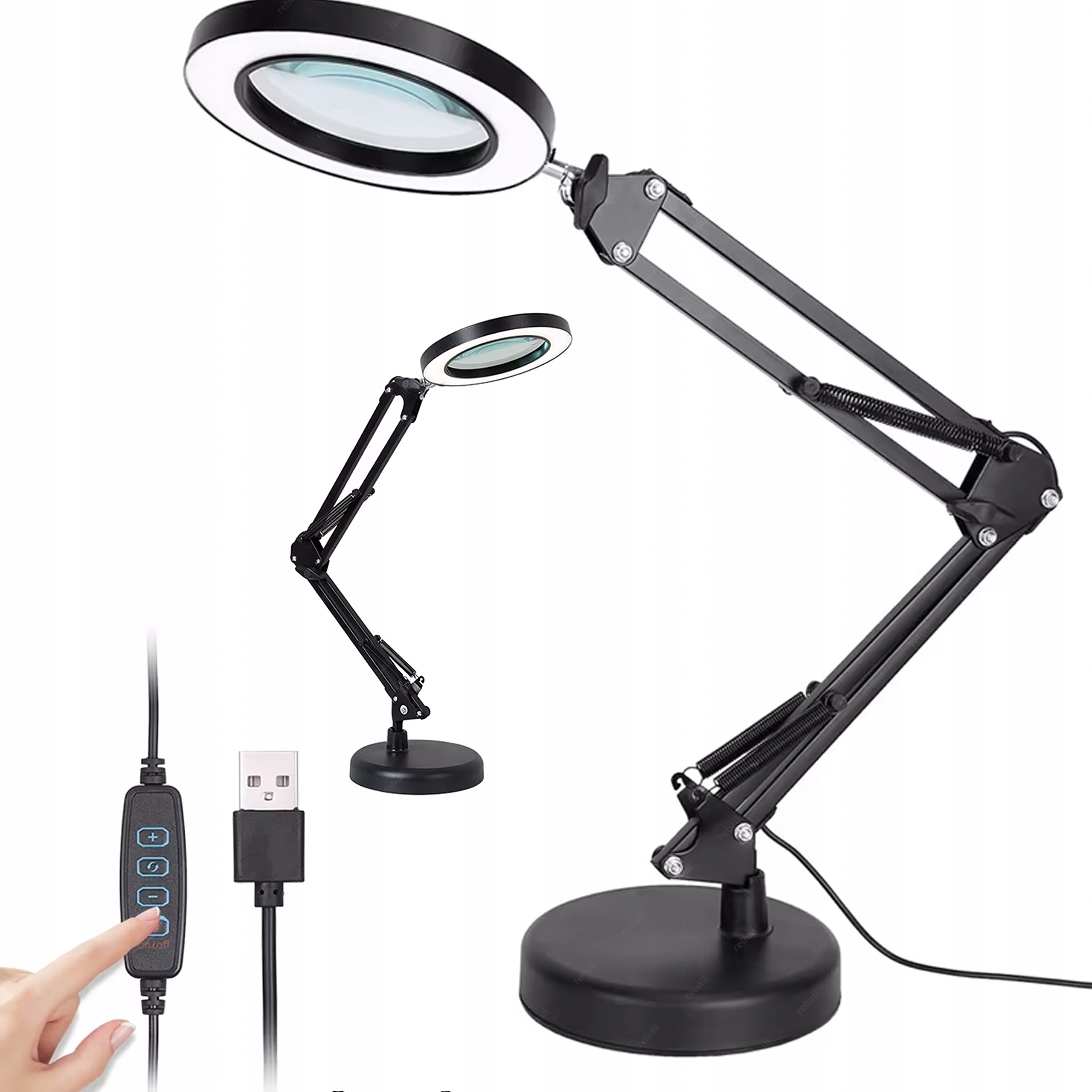 LAMPA LED Z UCHWYTEM DO STOŁU LUPĄ 105mm 3x PIERŚCIENIOWA SERWISOWA 12W USB