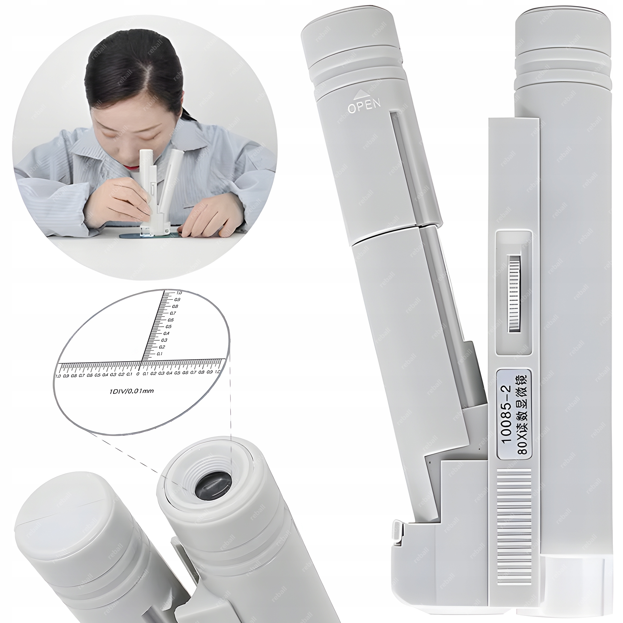 Praktyczna lupa o powiększeniu 80x z podziałką 0,01mm.