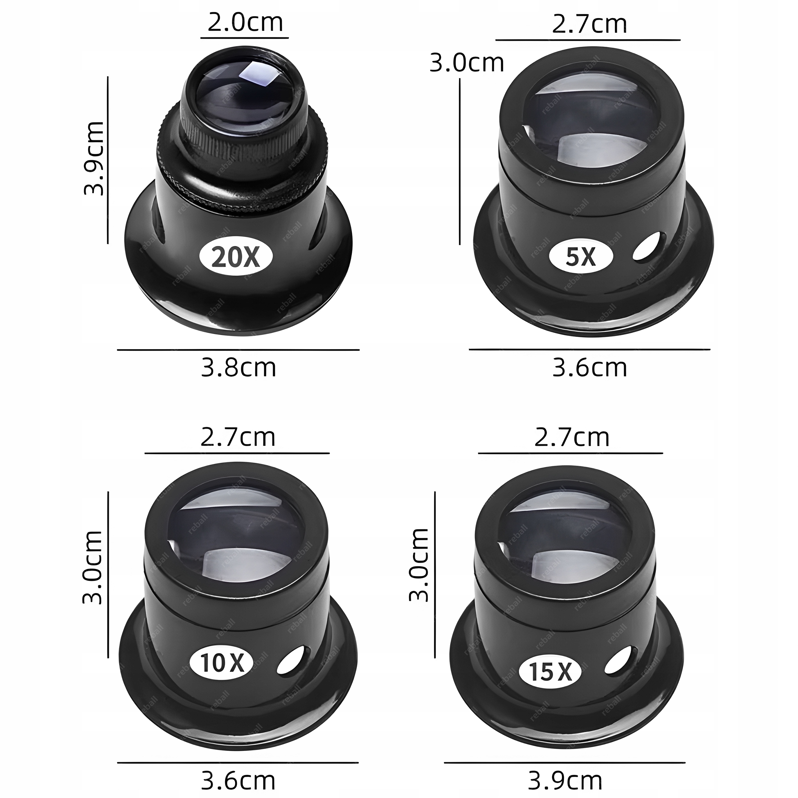 Praktyczny zestaw lup o powiększeniu 5x 10x 15x 20X.