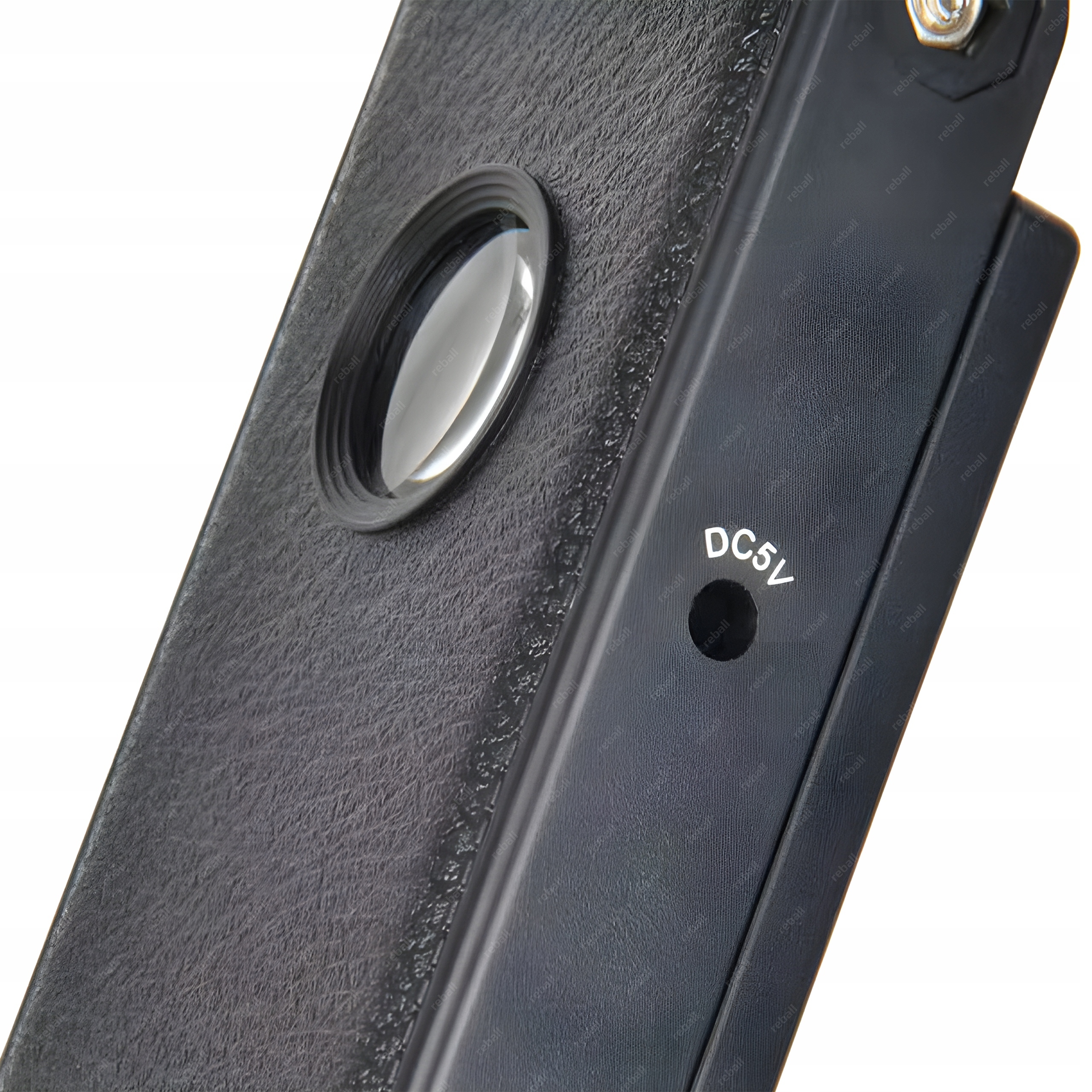 Lupa może być zasilana trzema bateriami AAA (brak w zestawie) lub przez dedykowane wejście DC za pomocą dołączonego kabelka USB.