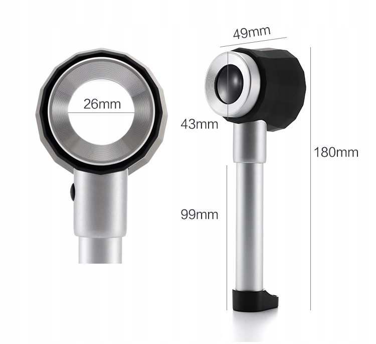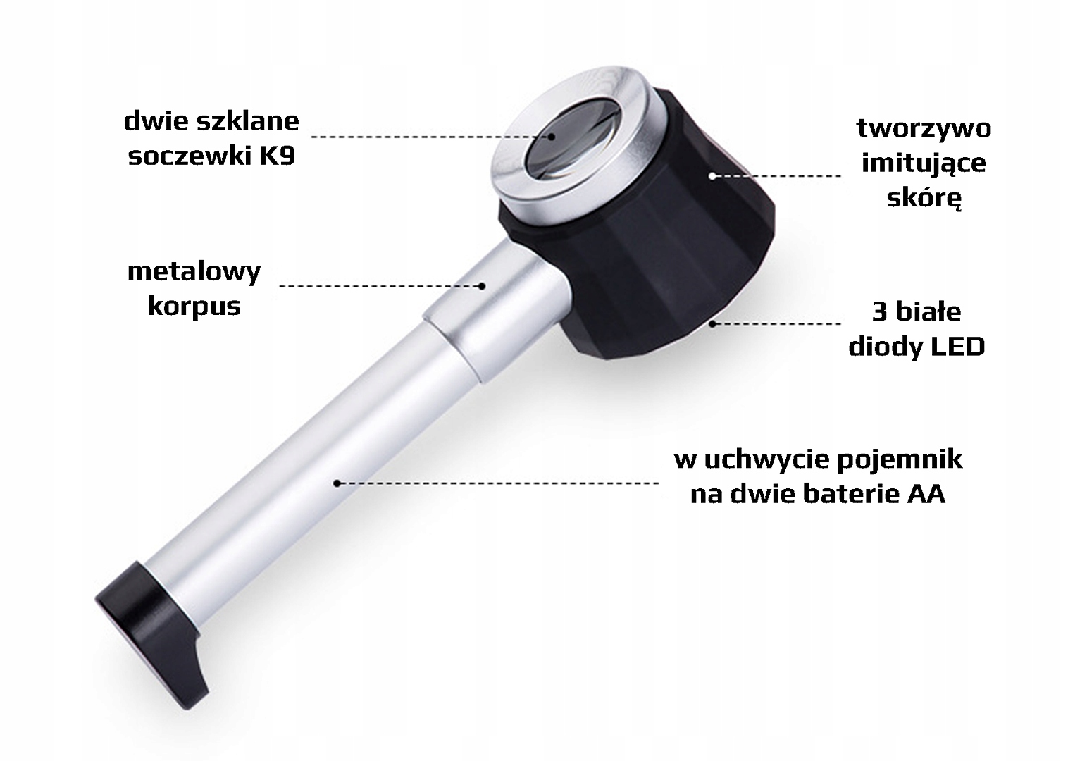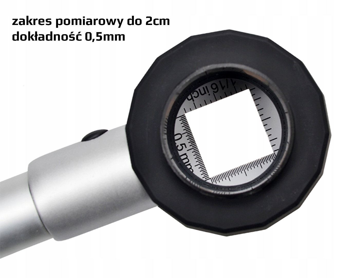 Dzięki wbudowanym diodom 3xLED obraz jest bardzo wyraźny i czytelny. Lupa posiada zakres pomiarowy do 2cm z dokładnością co 0,05mm.