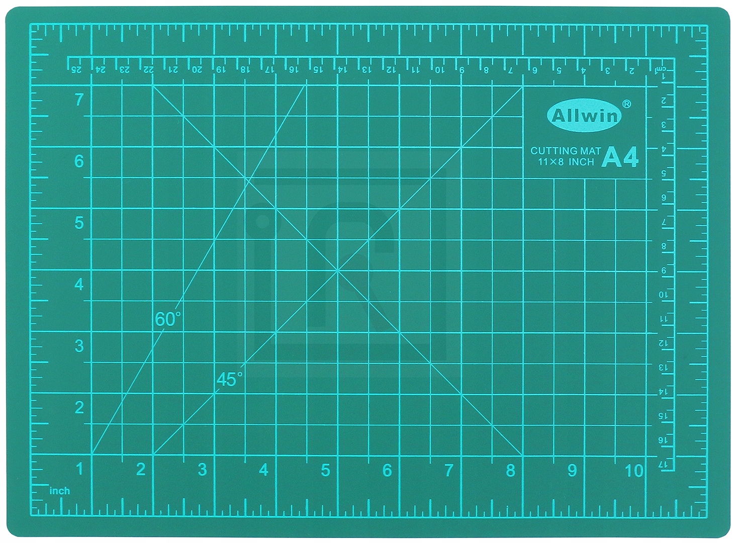 Mata posiada nadrukowane podziałki do precyzyjnego cięcia, kąty oraz miarkę metryczną.