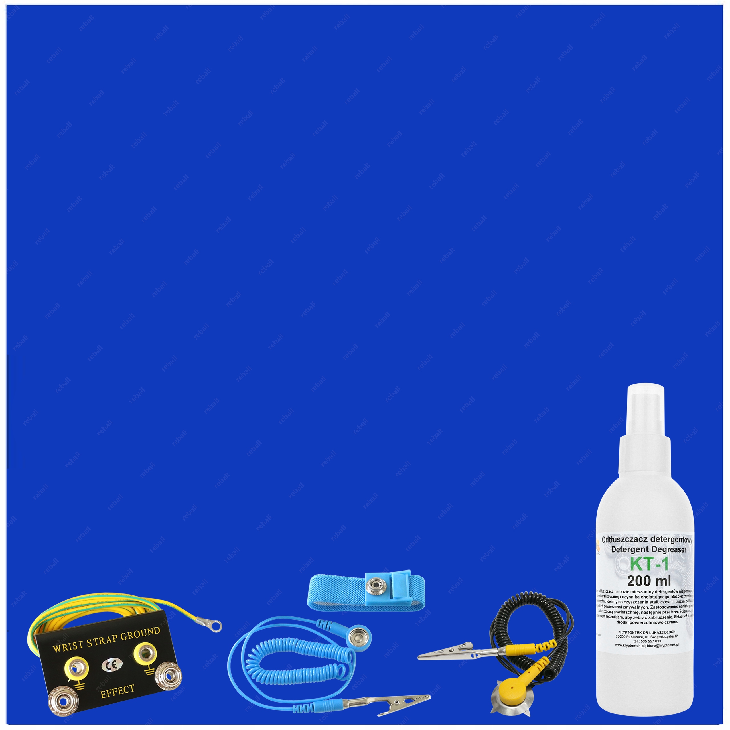 Widoczna na poniższym zdjęciu opaska uziemiająca na obuwie nie wchodzi w skład zestawu i znajduje się na naszych pozostałych aukcjach.