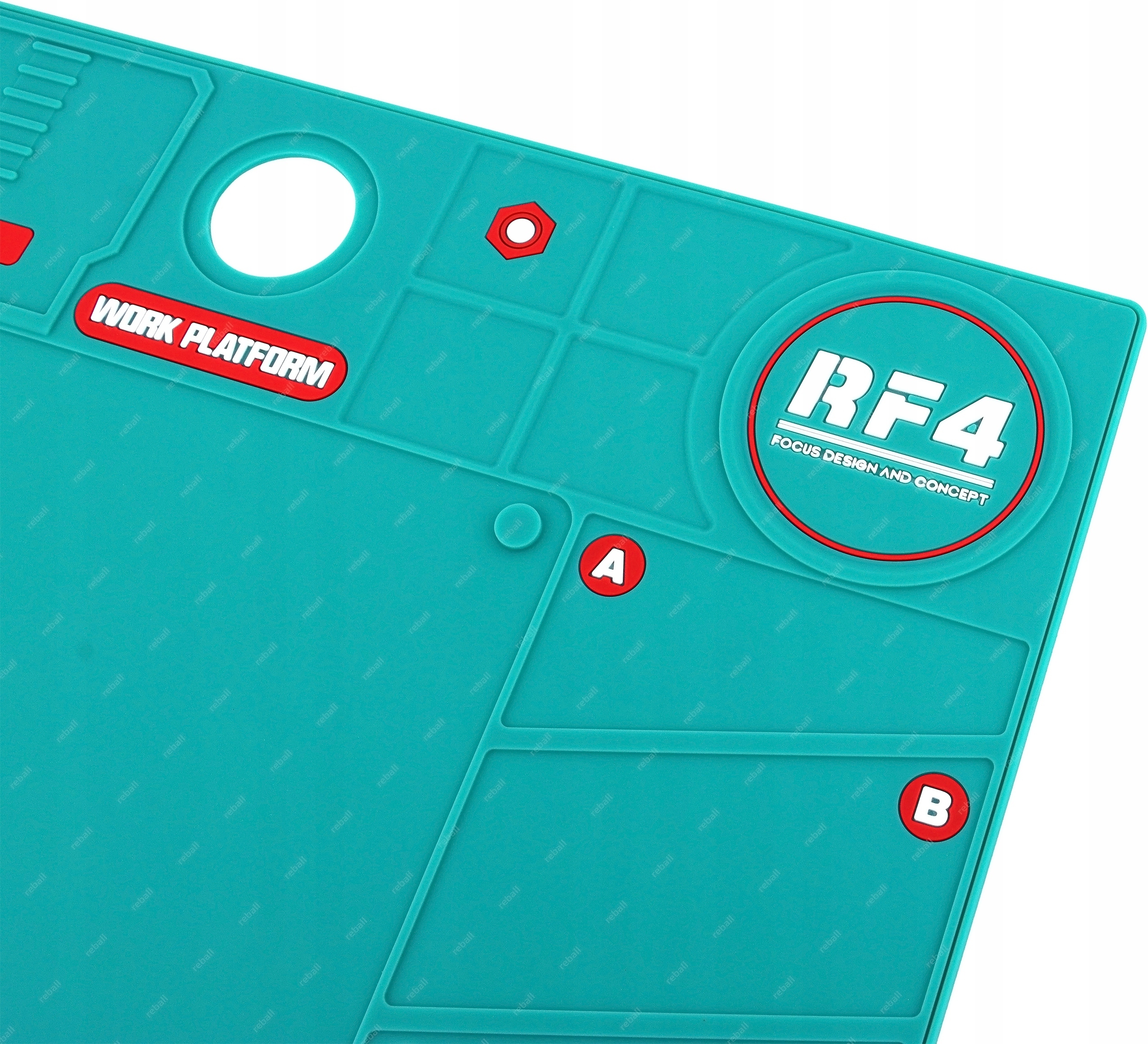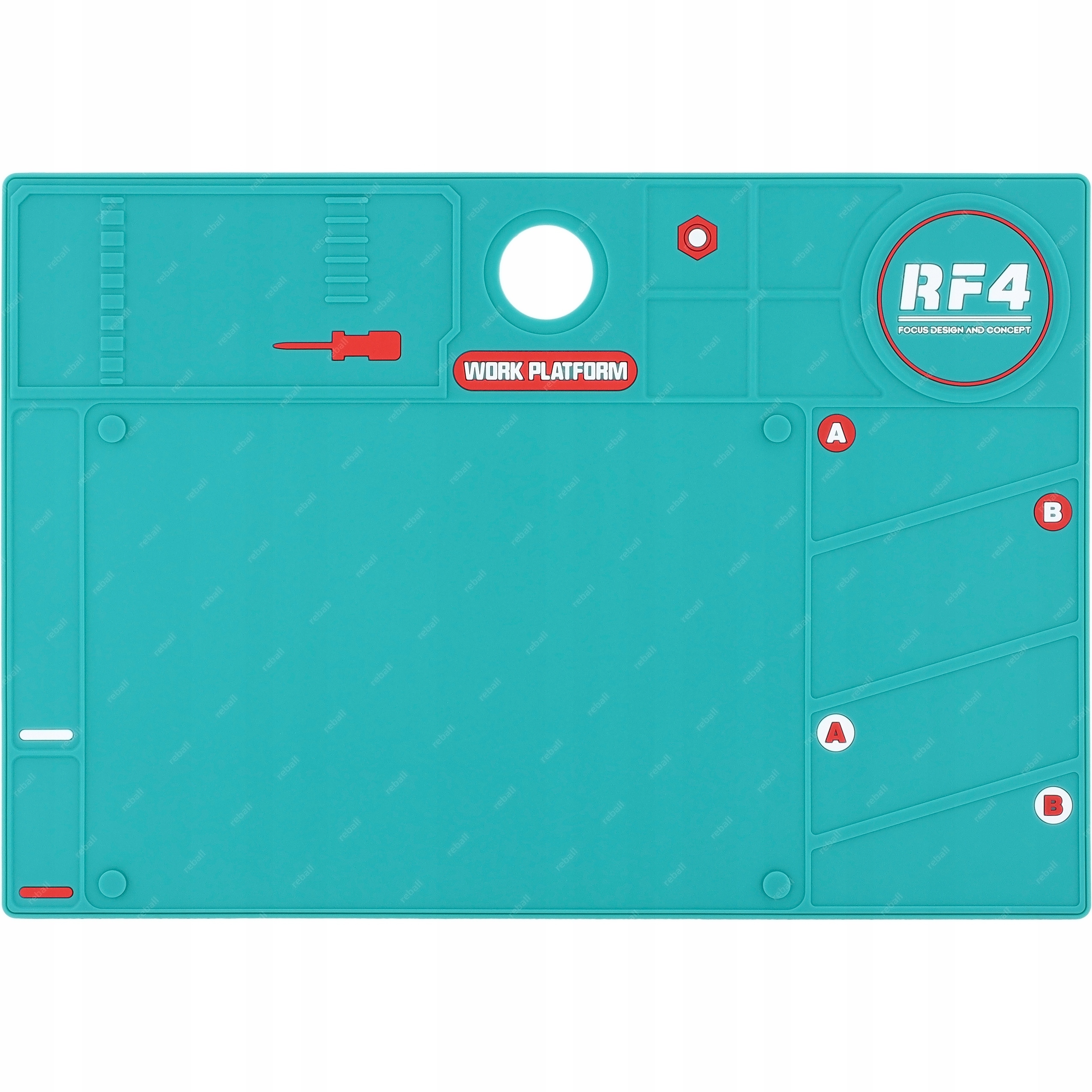Wysokotemperaturowa mata silikonowa RF4 RF-P02 przeznaczona jest do serwisów urządzeń elektronicznych, GSM, foto. Maja idealnie pasuje na blaty mikroskopów w celu prowadzenie prac lutowniczych.