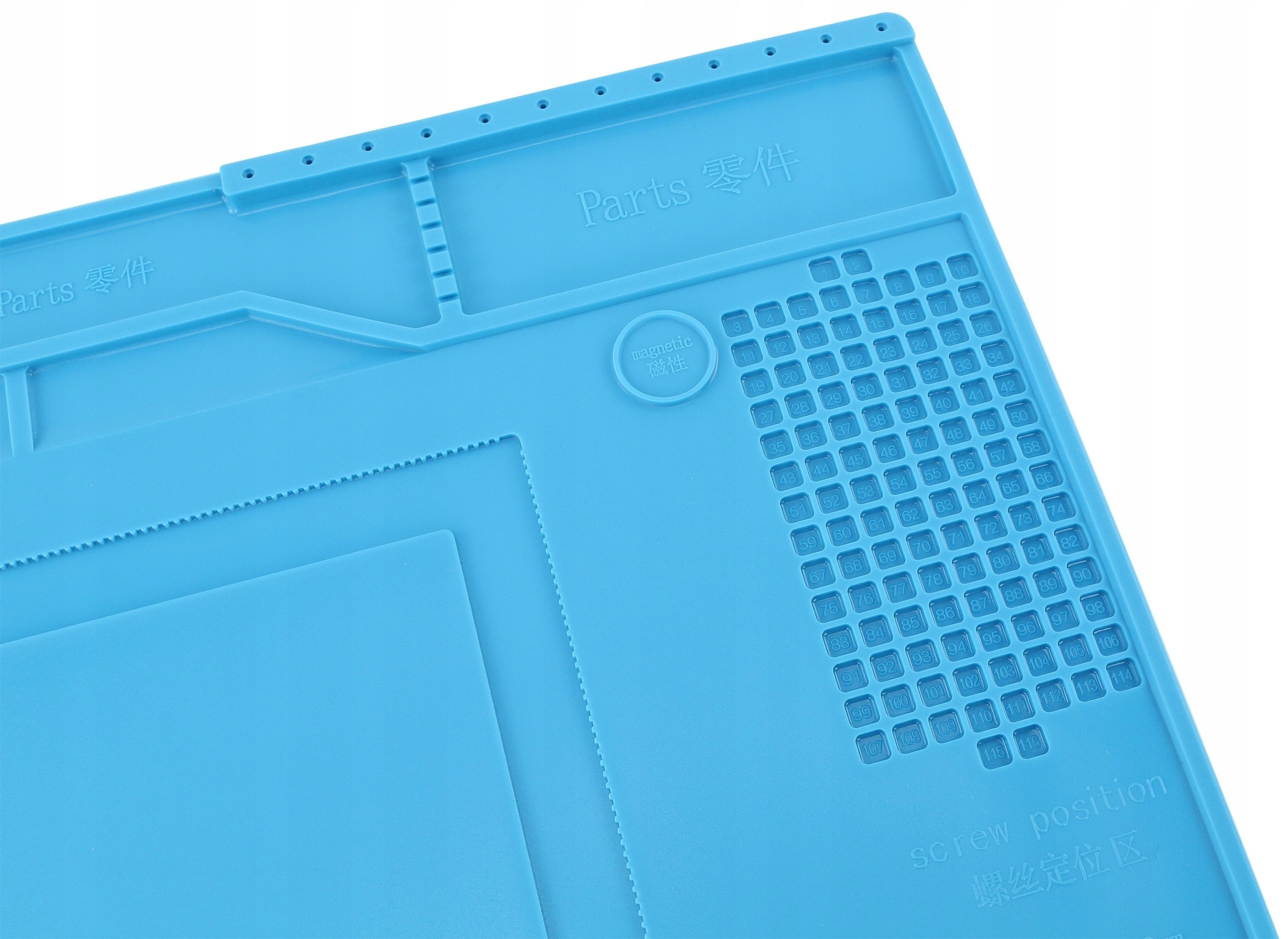 Służy do segregacji i unieruchomienia części i elementów elektronicznych, wszelkich elementów metalowych i śrubek podczas naprawy smartfonów, tabletów, laptopów itp.