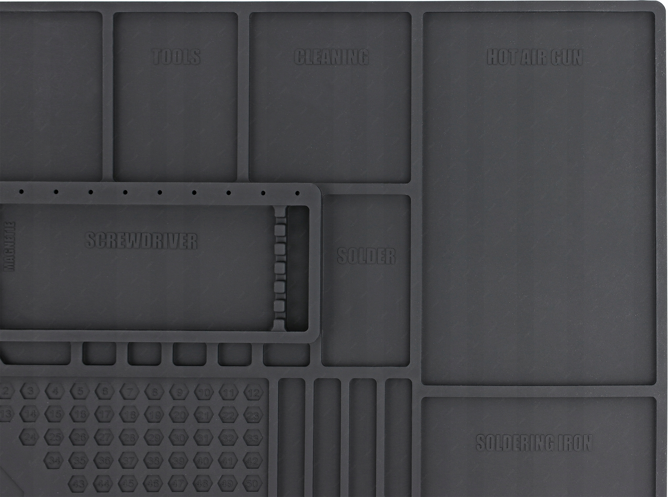 Służy do segregacji i unieruchomienia części i elementów elektronicznych, wszelkich elementów metalowych i śrubek podczas naprawy smartfonów, tabletów, laptopów itp.