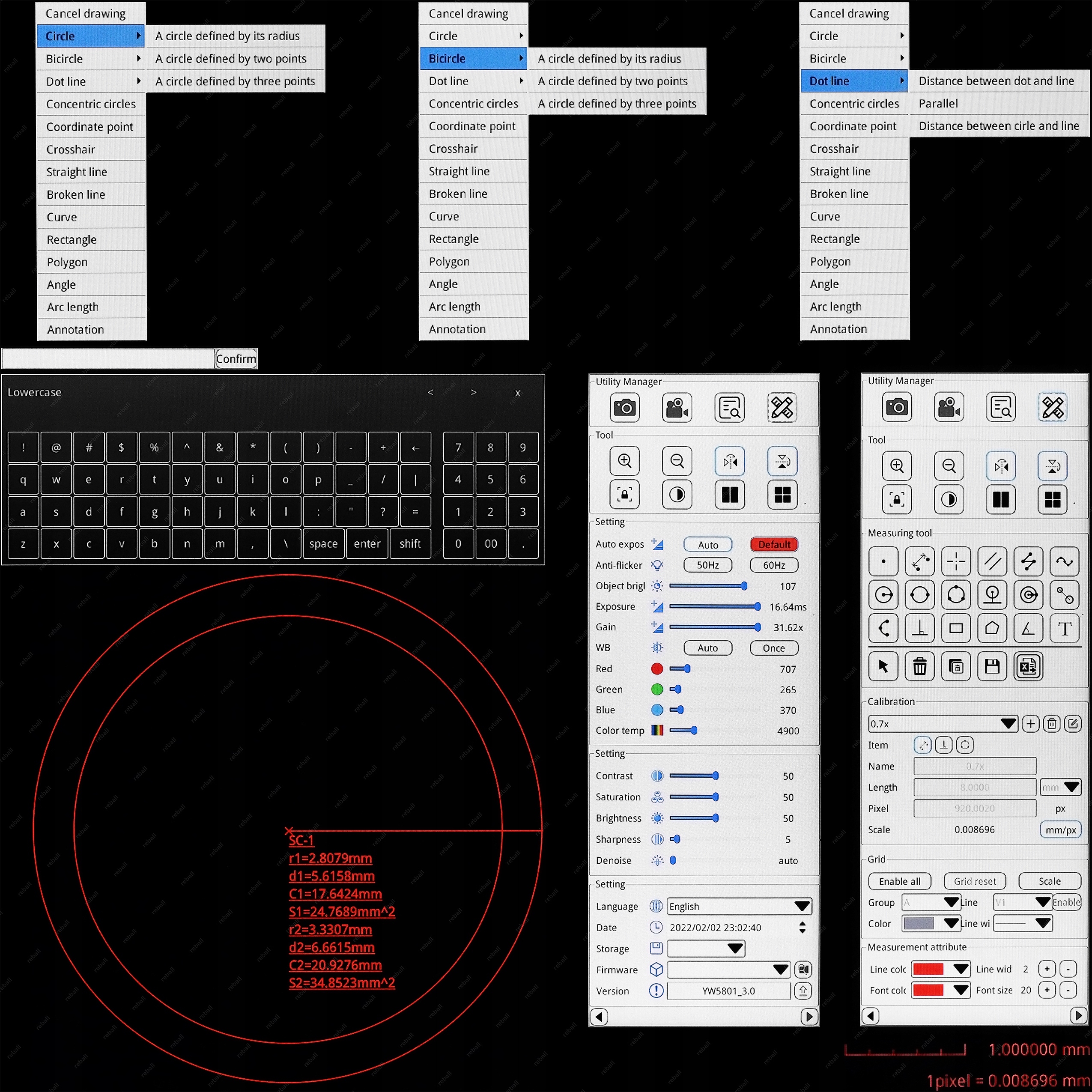 Kamera mikroskopu posiada zaawansowane funkcje regulacji oraz pomiarów: