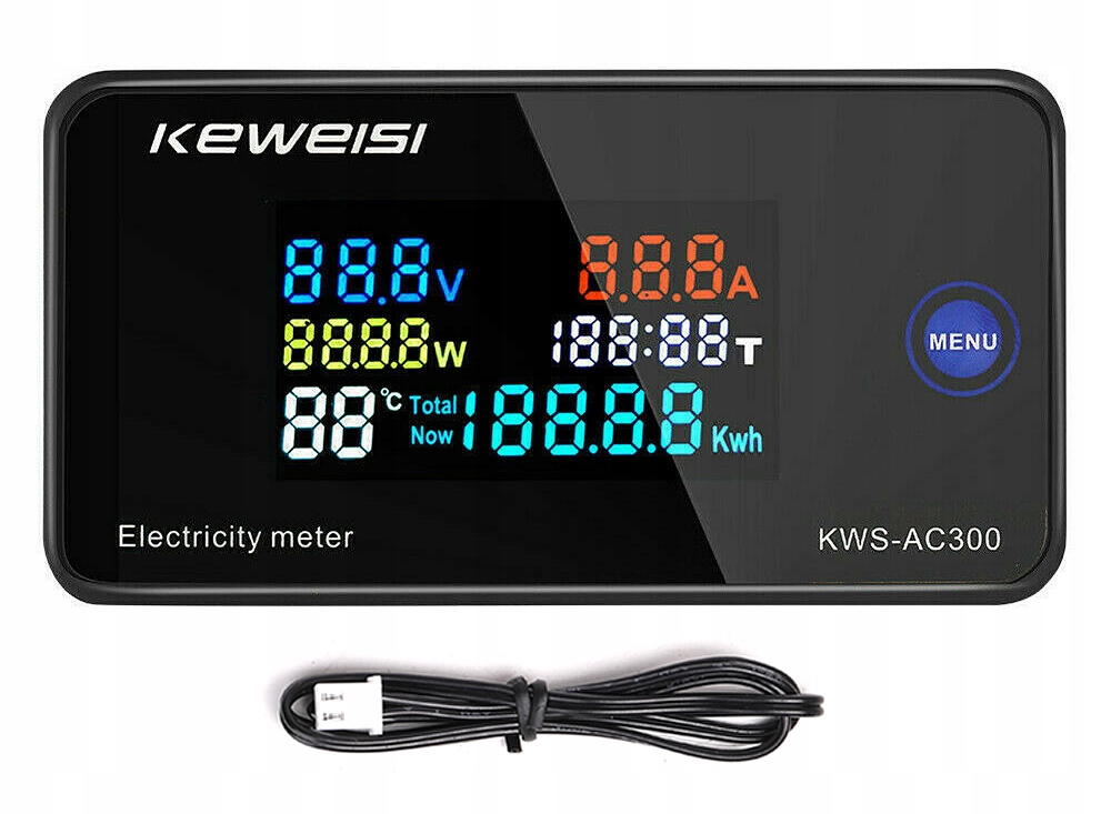 KWS-AC300 posiada szeroki zakres napięcia mierzonego od 50 do 300VAC oraz prądu od 0 do 10A.