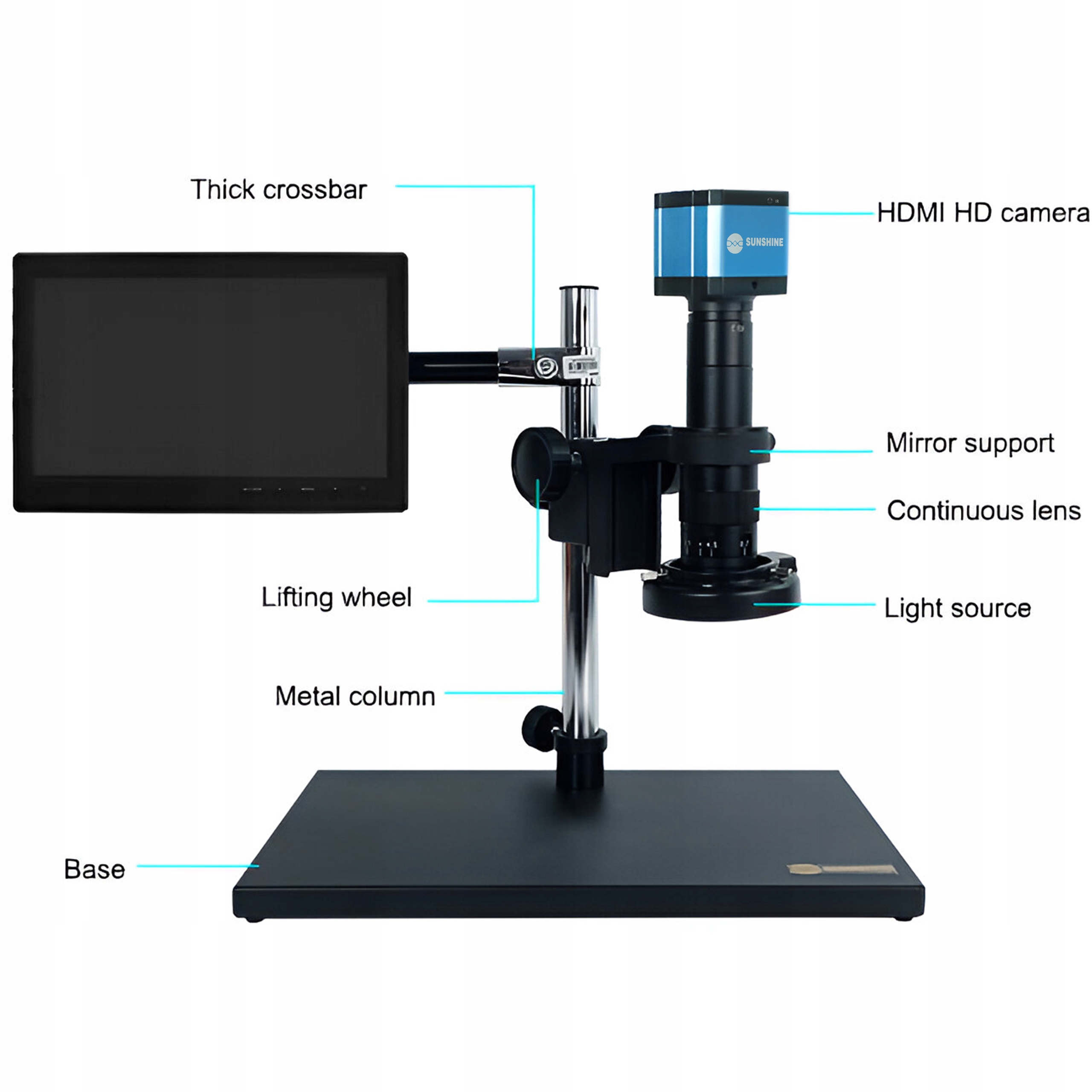 Mikroskop posiada regulowane przybliżenie oraz wyświetla obraz w czasie rzeczywistym.
