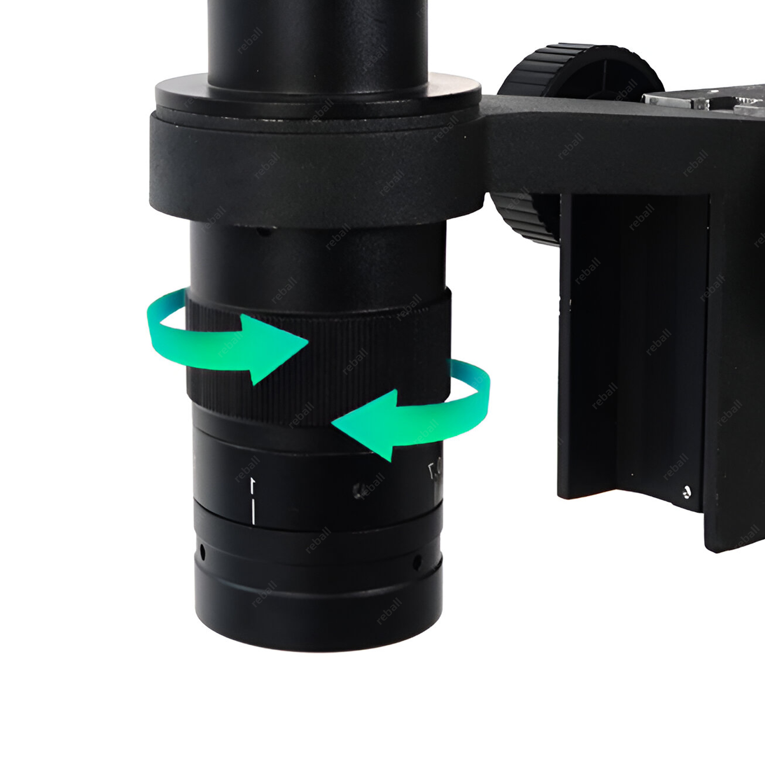 Pokrętłem uchwytu obiektywu można regulować jego wysokość góra-dół dopasowując jakość obraz do badanego obiektu.