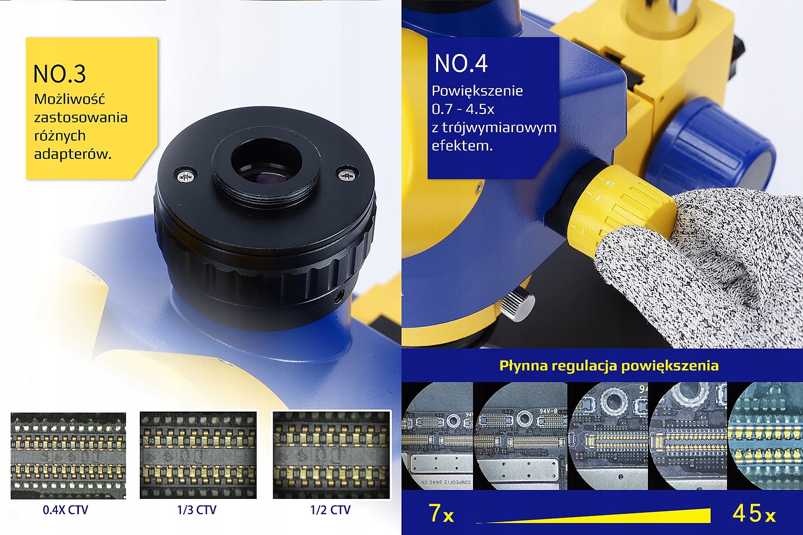 (powiększenie 7x do 45x, średnica pola widzenia 25mm)