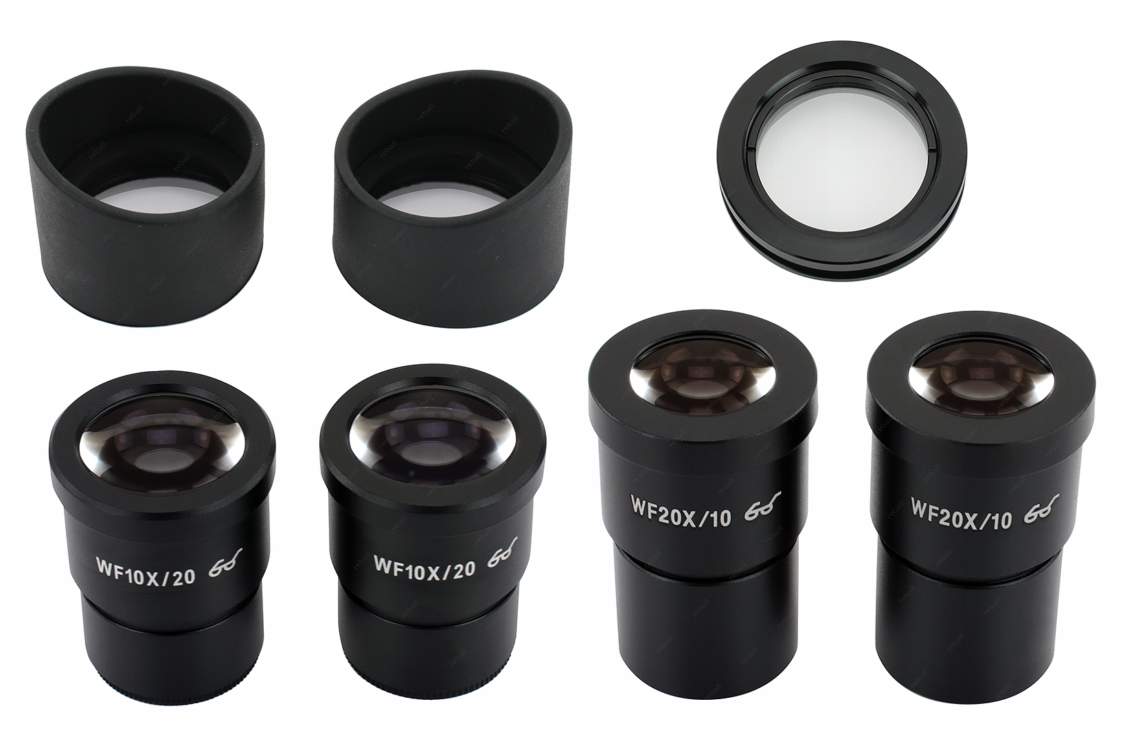 W zestawie dwa komplety okularów i zabezpieczeniem dolnego obiektywu: