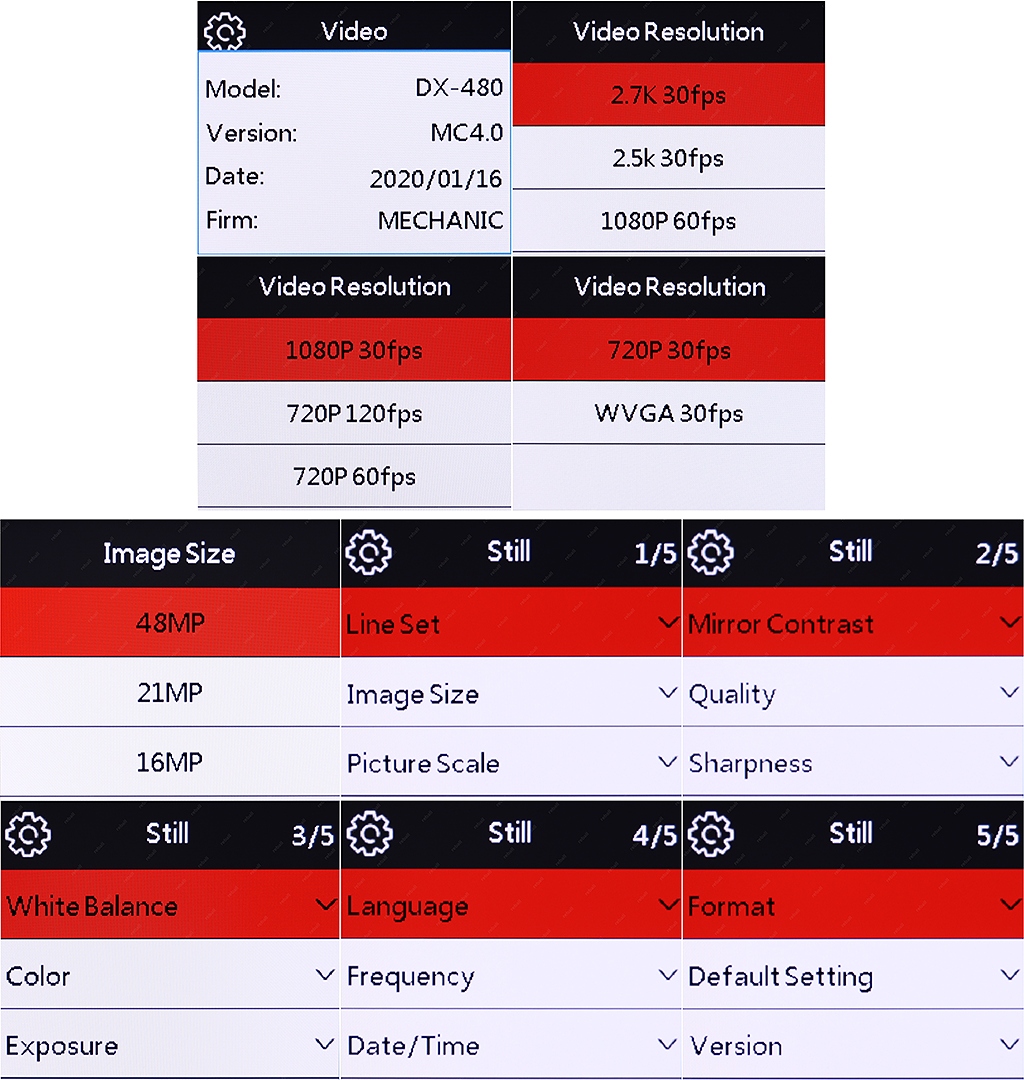 Możliwość regulacji: ekspozycji, balansu bieli, kolorów, jasności, kontrastu, nasycenia, pion/poziom, 16:9/4:3.