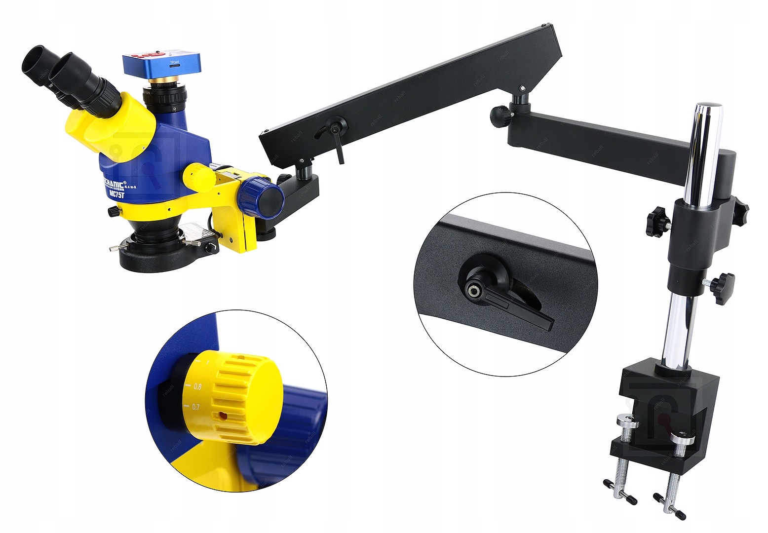 W naszej ofercie znajdziesz również ten mikroskop bez kamery i podświetlenia (dobierzesz go samodzielnie) jak i sam uchwyt do mikroskopu.
