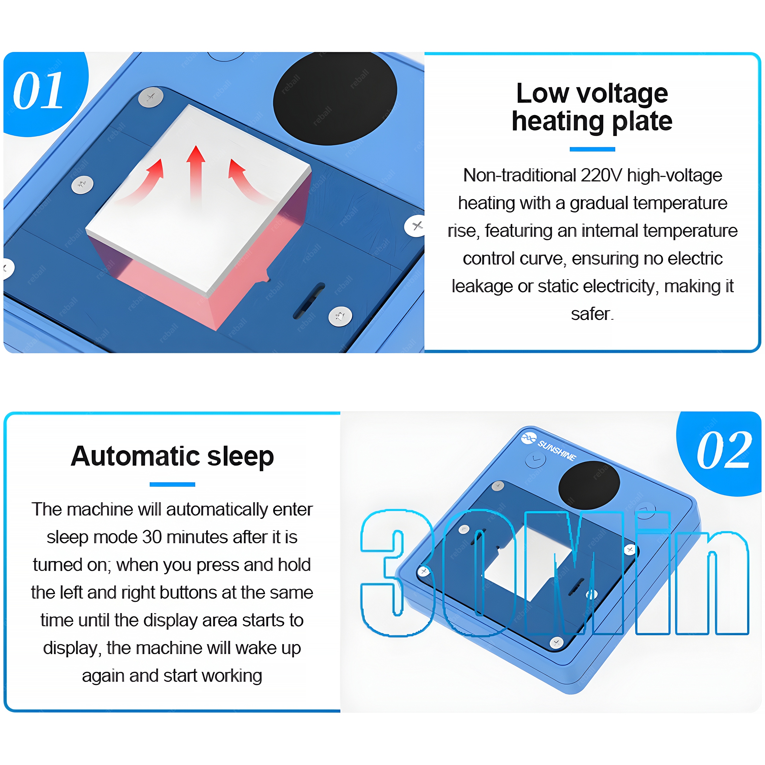 ✅ Płyta grzewcza o niskim napięciu – brak ryzyka porażenia lub zakłóceń elektrostatycznych.