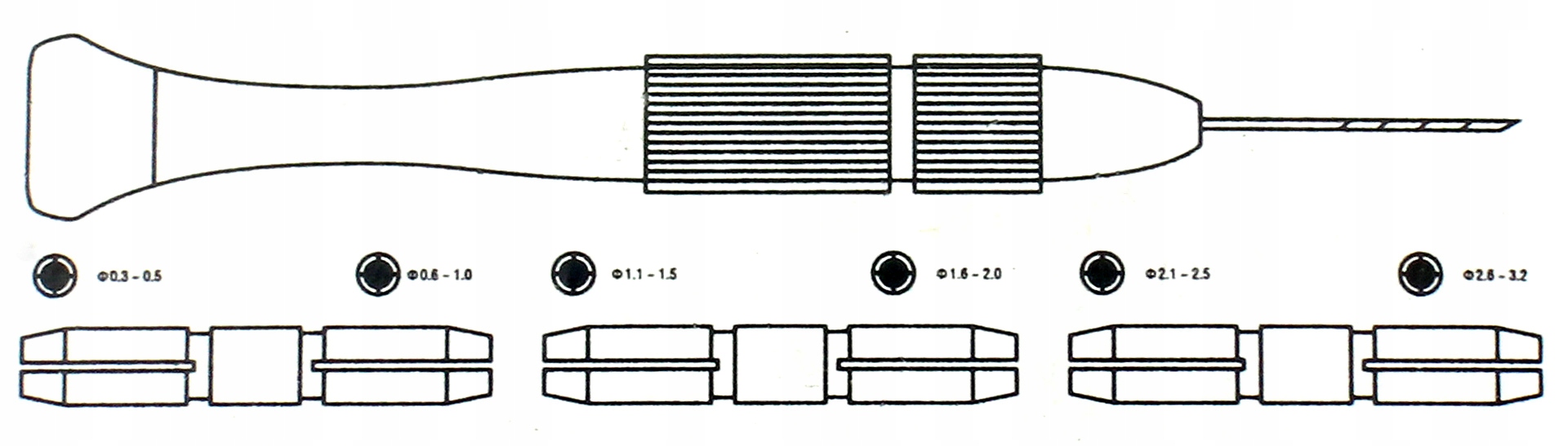 W ZESTAWIE 3 UCHWYTY DO WIERTEŁ ORAZ WIERTŁO 1mm