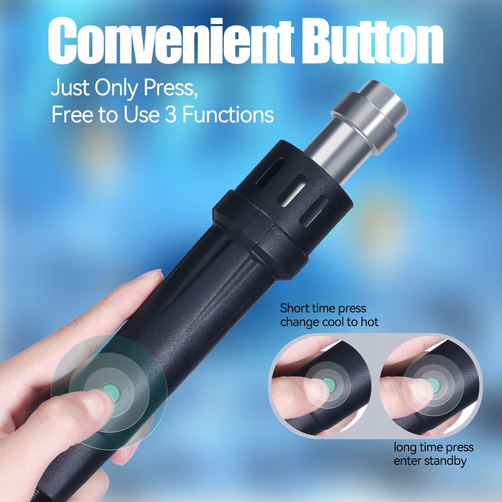 W tym modelu wprowadzono praktyczny dwufunkcyjny przycisk w kolbie lutowniczej: