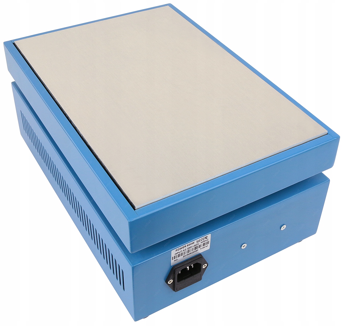 Podgrzewacz posiada grubą płytę grzewczą wykonaną ze stopu aluminium. Dzięki zastosowaniu aluminium uzyskujemy precyzyjną kontrolowaną przez sterownik temperaturę ze stałą jej wartością w czasie (zmniejszenie wahań temperatury i wpływu otoczenia do minimum). Przekłada się to to na powtarzalność procesu jak i zmniejsza do minimum możliwość przegrzania i uszkodzenia układów BGA.