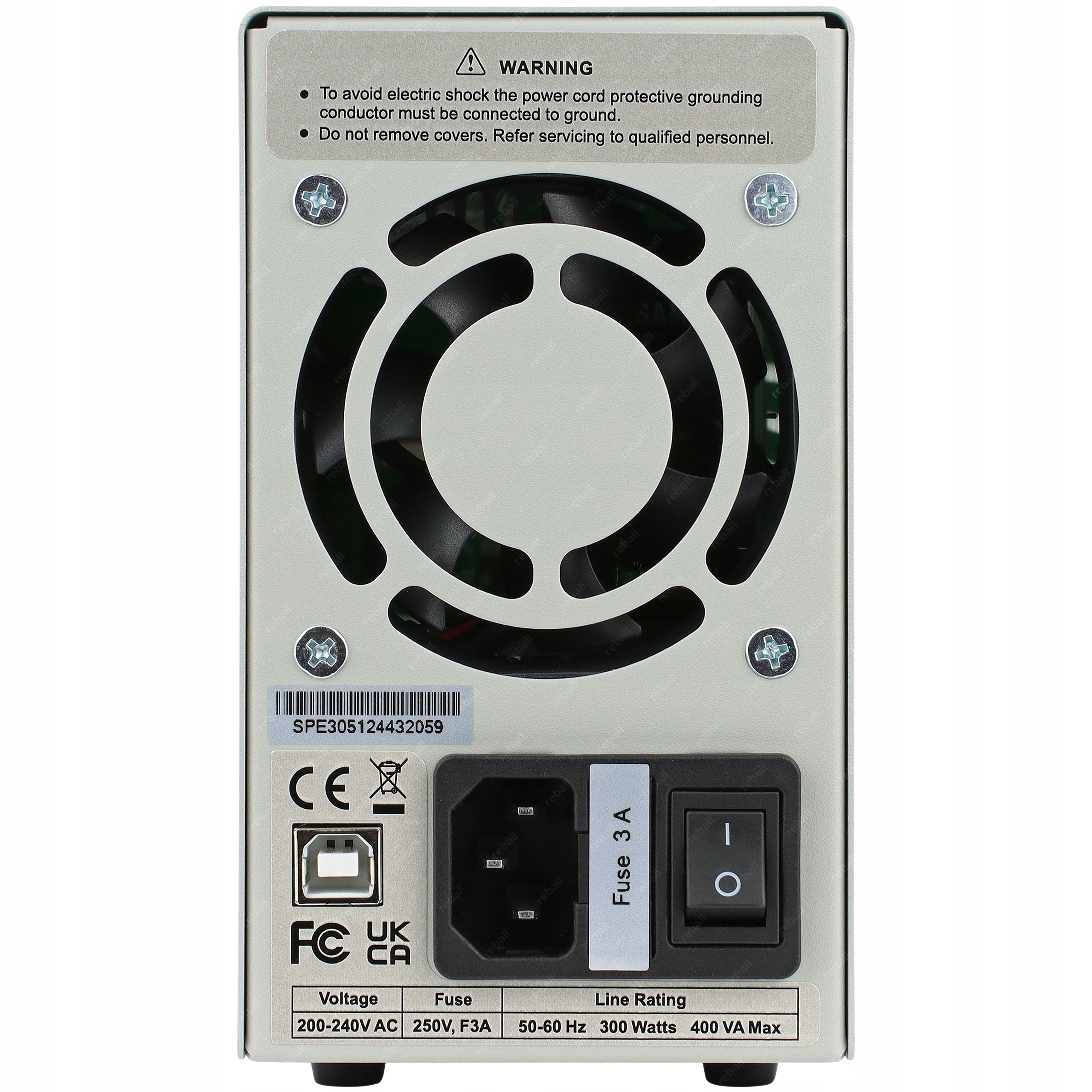 Posiada jedno kanałowe wyjście regulowane w zakresie 0–30V DC oraz 0–5A, zapewniając maksymalną moc 150W.