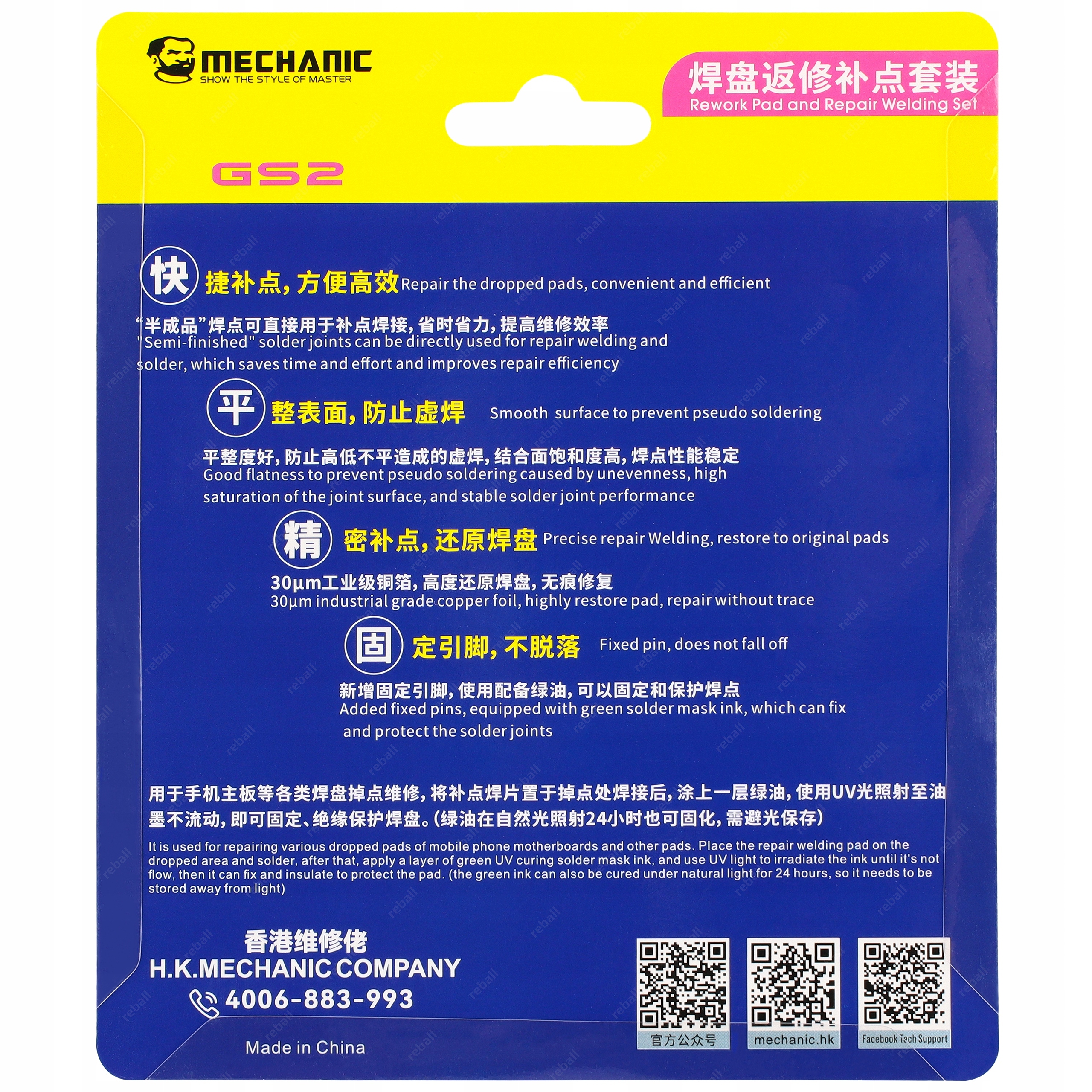 Pady można przylutować w miejscach uszkodzenia (kiedy wyprowadzenia z warstw laminatu są dostępne) jak i przykleić na lakier UV dołączony w zestawie.