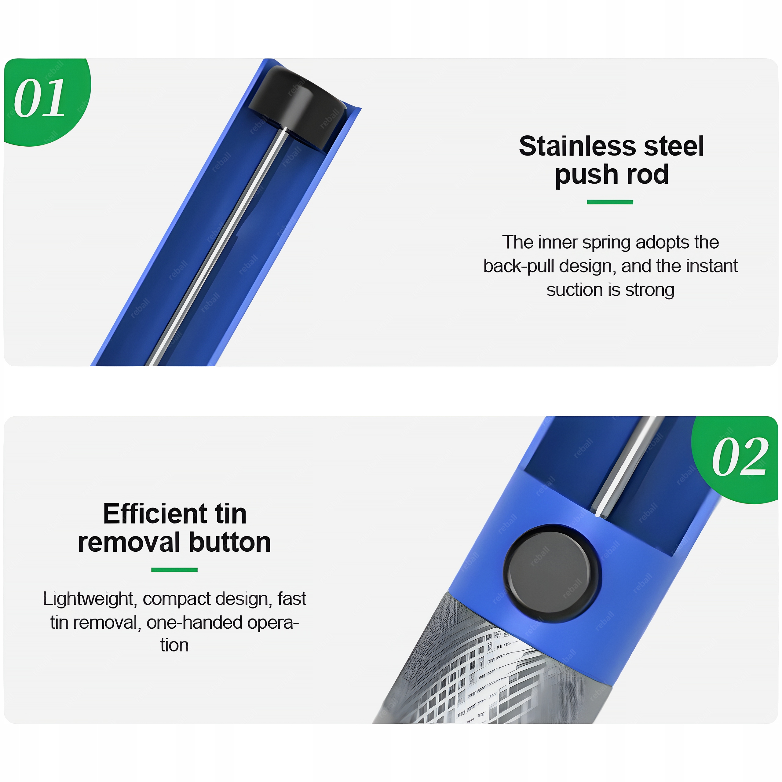 ✅ Silne zasysanie – wydajny mechanizm tłokowy zapewnia skuteczne usuwanie cyny z punktów lutowniczych