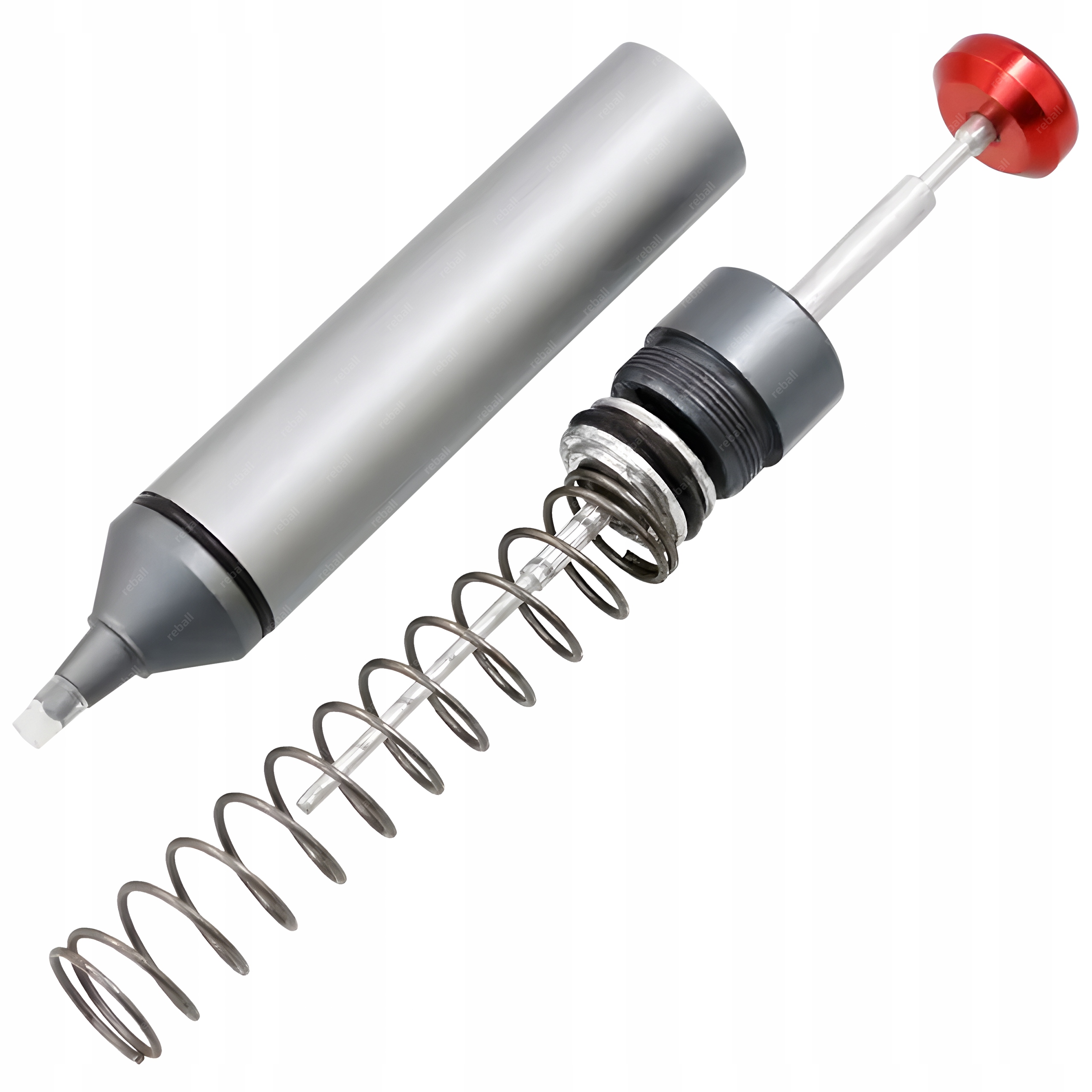 Odsysacz posiada tłoczek z uszczelnieniem a także aluminiową obudowę co umożliwia długotrwałą pracę.