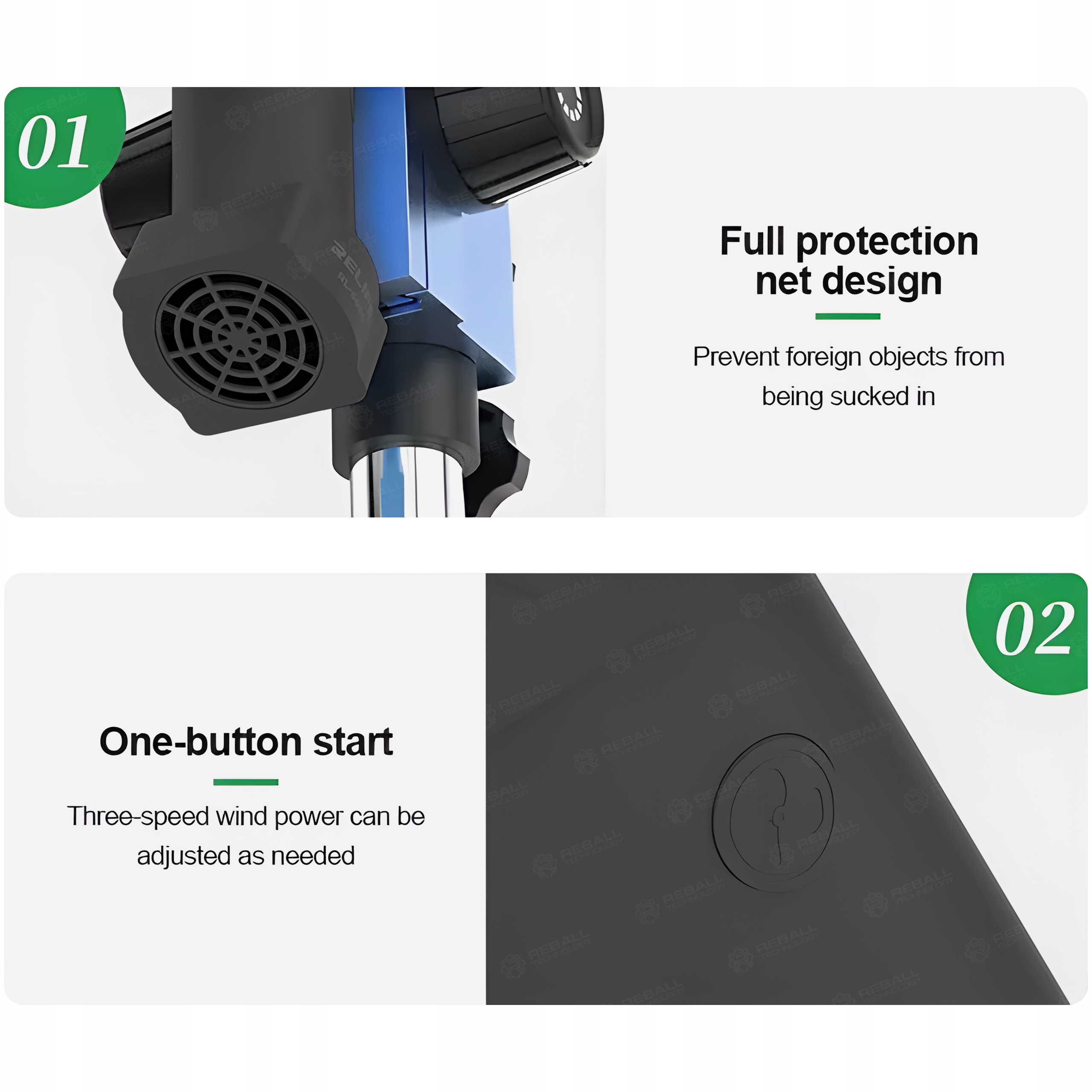 ✅ Pełna osłona wentylatora ogranicza ryzyko zassania ciał obcych.