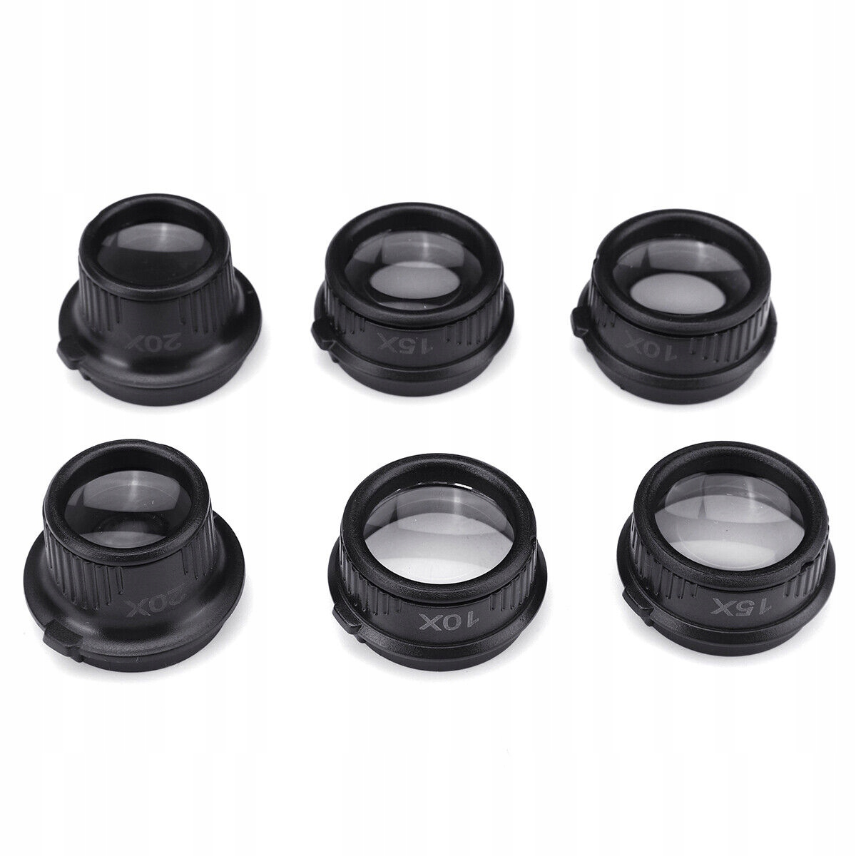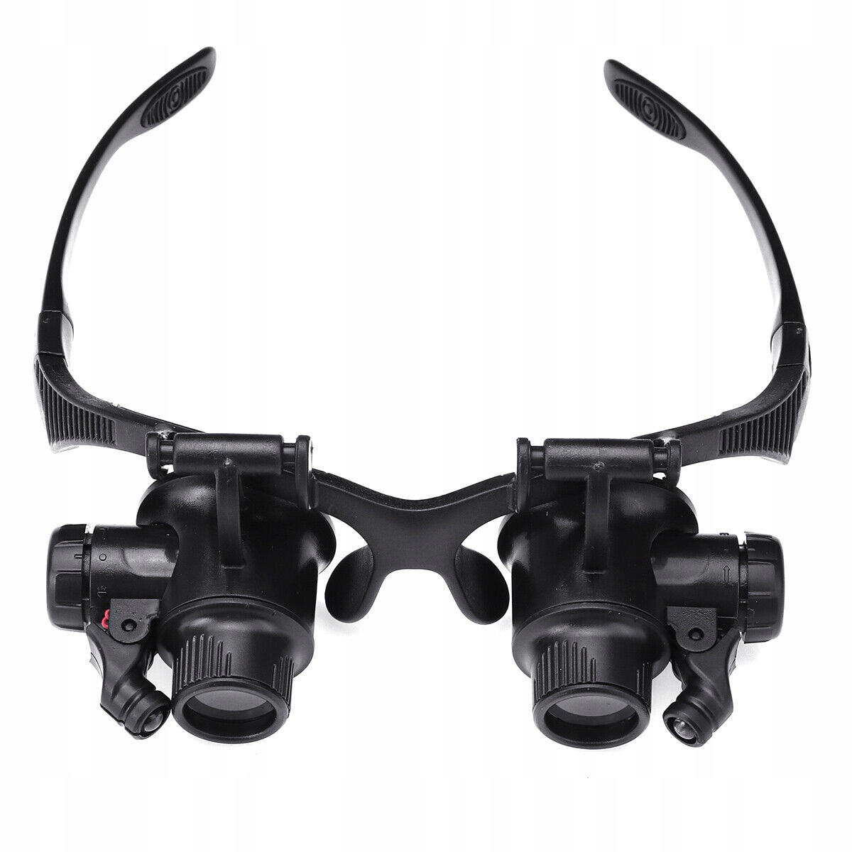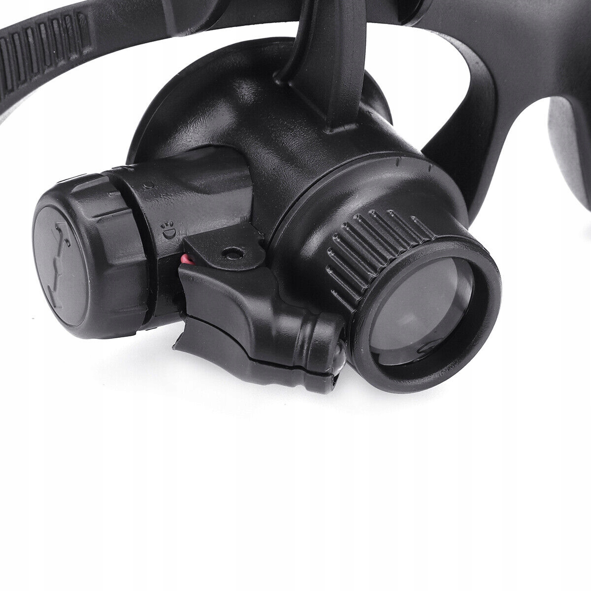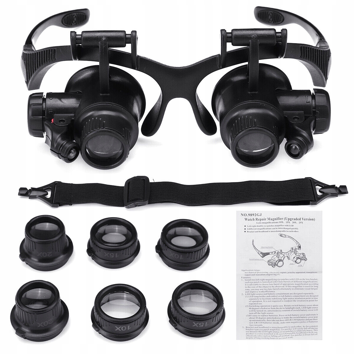 Okulary posiadają 4 komplety wymiennych soczewek o powiększeniu 10x, 15x, 20x, 25x