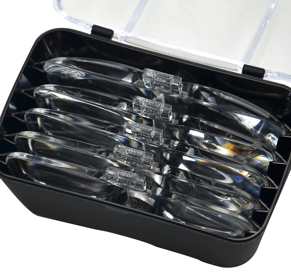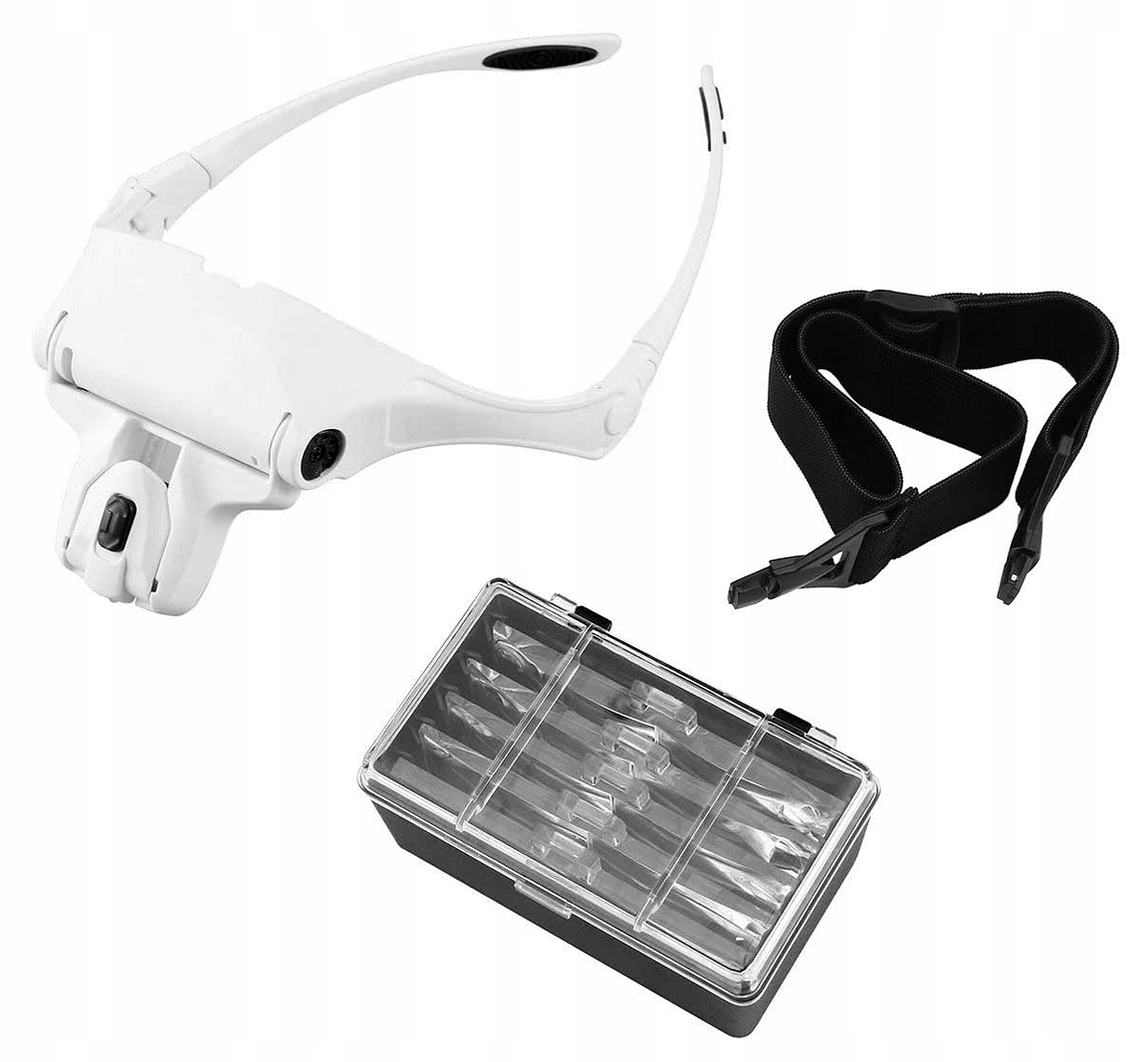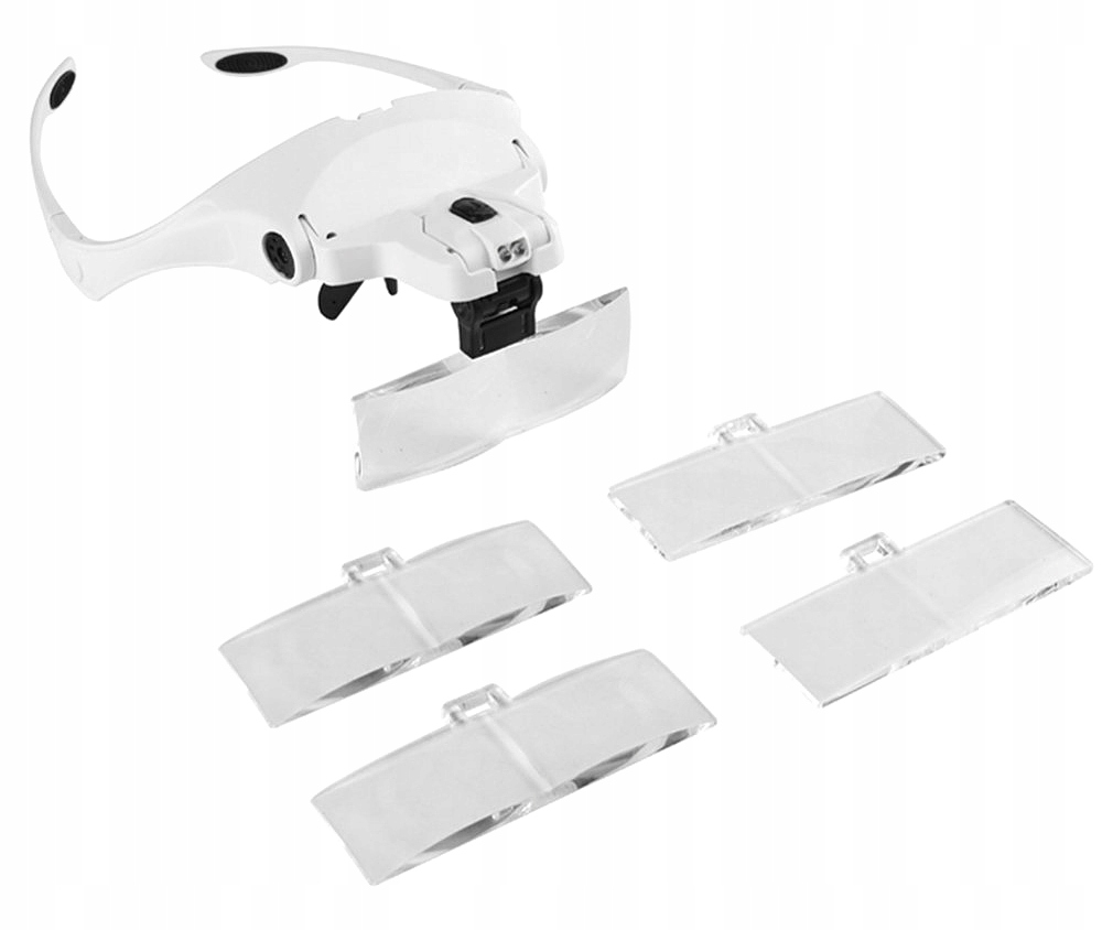 Okulary posiadają 5 wymiennych soczewek o powiększeniu 1.0x, 1.5x, 2.0x, 2.5x, 3.5x