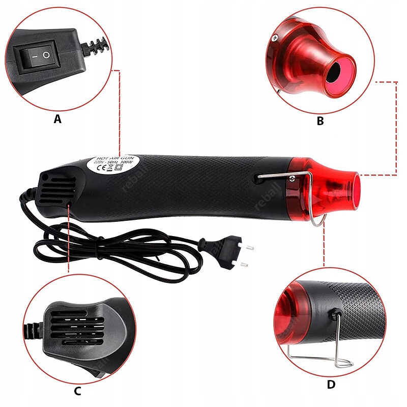 MF300 to ręczna bardzo lekka opalarka (hotair - gorące powietrze) przeznaczona do wszelkich prac związanych z potrzebą punktowego ogrzania powierzchni do temperatury nie przekraczającej 170°C.