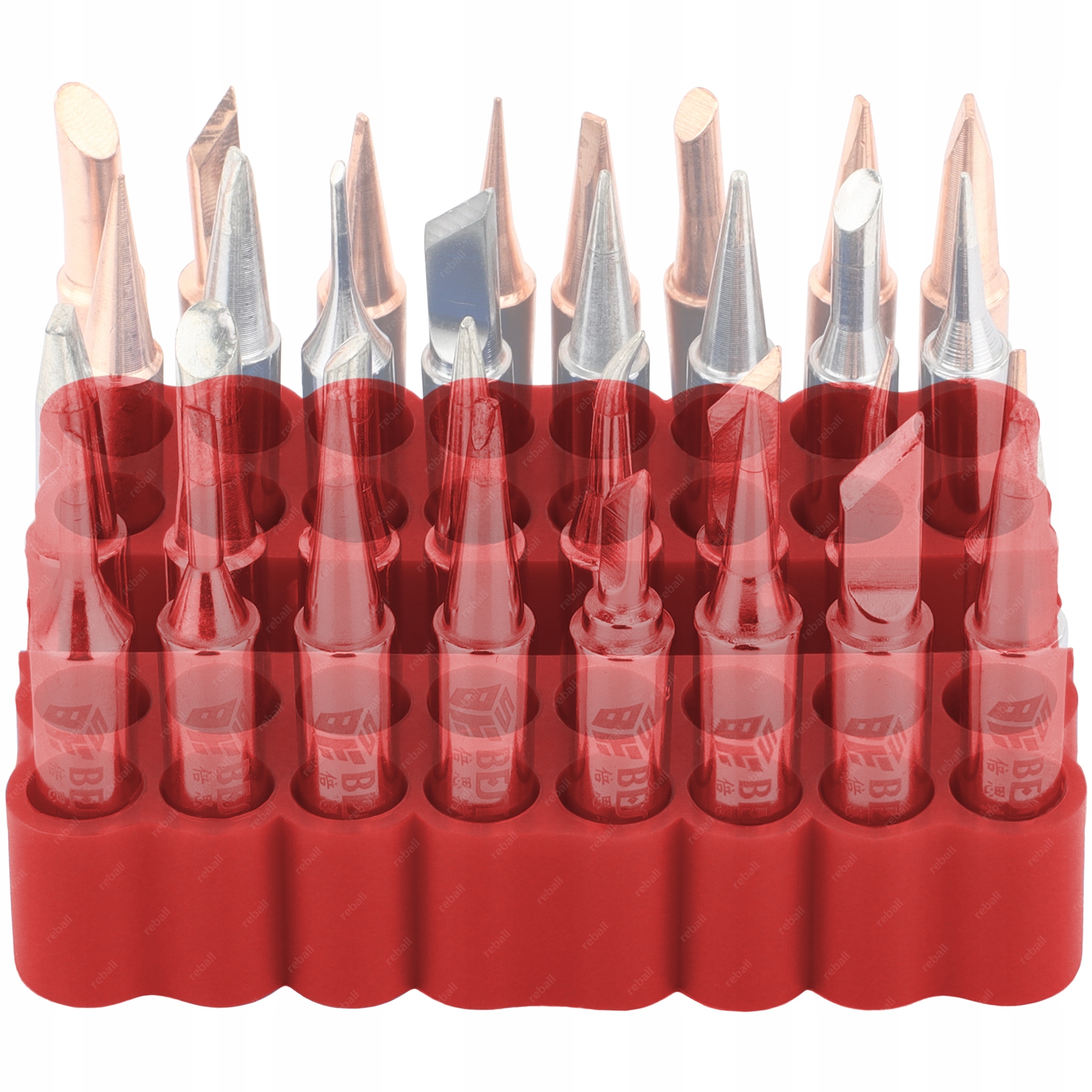Ten praktyczny gadżet pozwala na efektywne przechowywanie i organizację różnych typów grotów lutowniczych, zapewniając bezpieczeństwo i łatwy dostęp do niezbędnych akcesoriów.