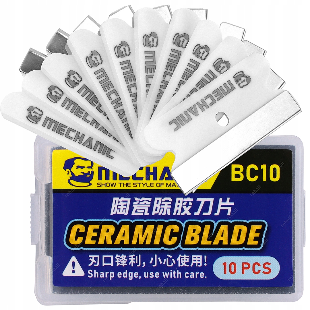 Wysokiej jakości ceramiczne nożyki / ostrza przeznaczone do usuwania kleju i zanieczyszczeń z wszelkich bardzo delikatnych powierzchni płaskich tj. wyświetlacze, szkło, powierzchnie lakierowane, plastikowe itp.