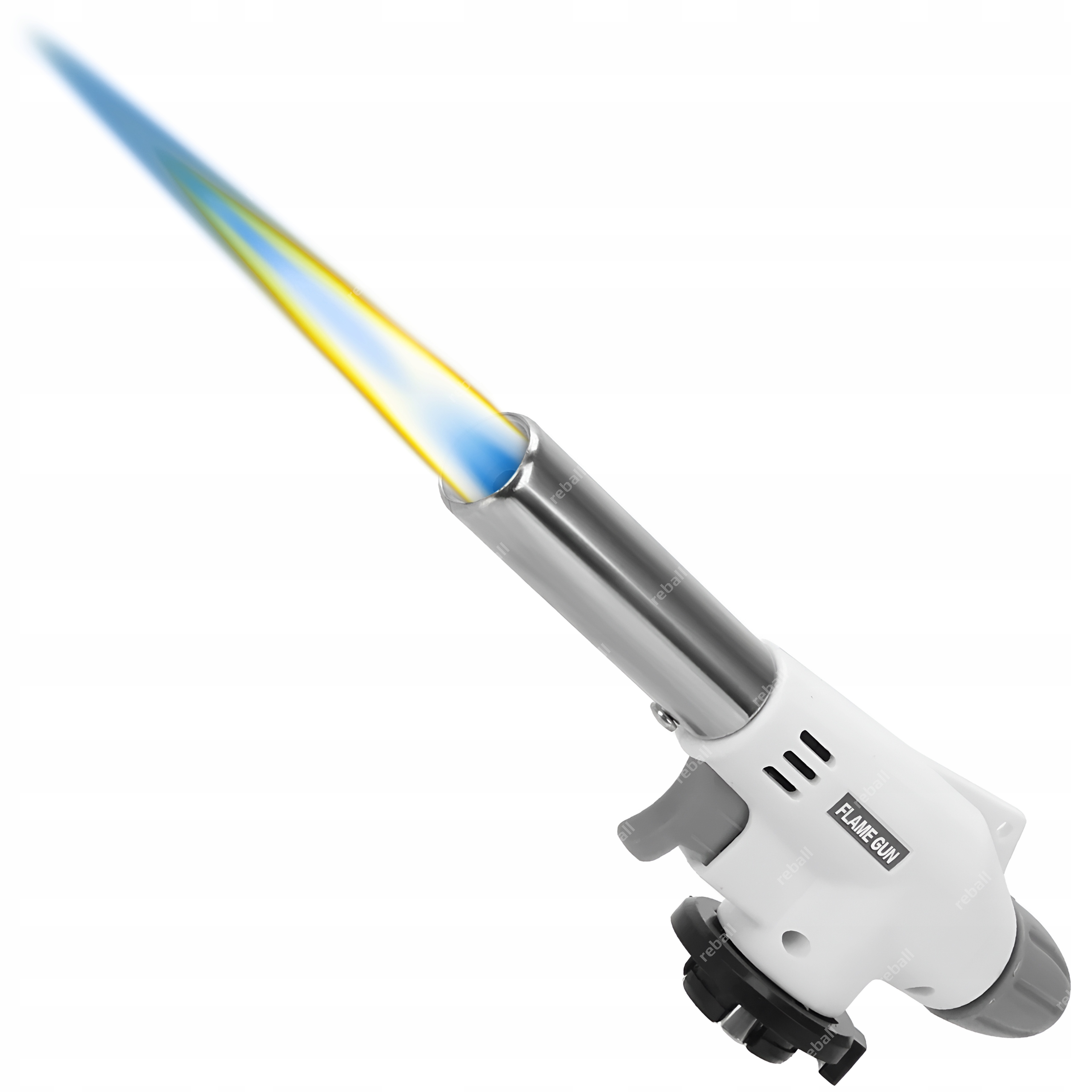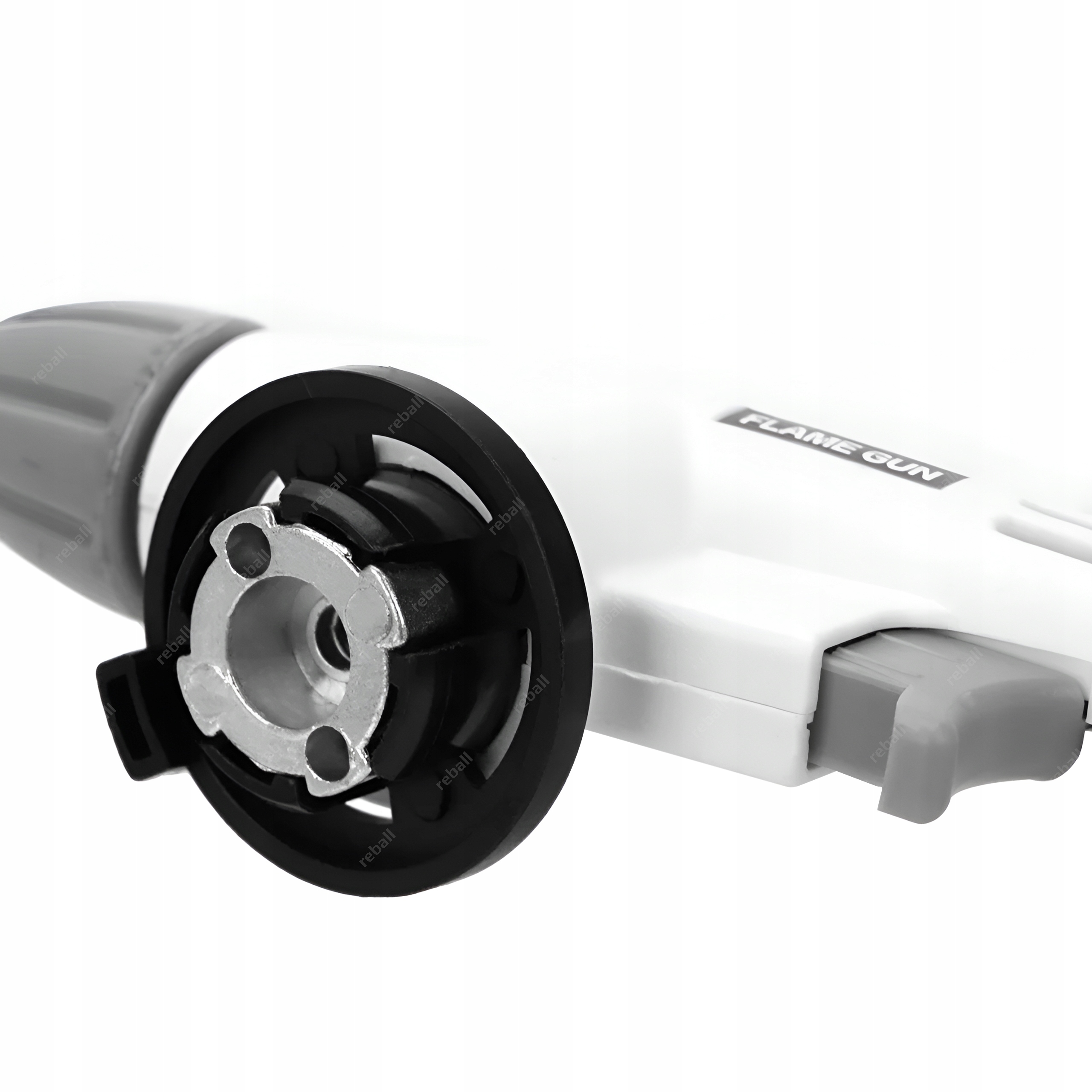 Palnik posiada wbudowany zapłon piezoelektryczny – wystarczy nacisnąć przycisk, aby iskra zapaliła strumień gazu.