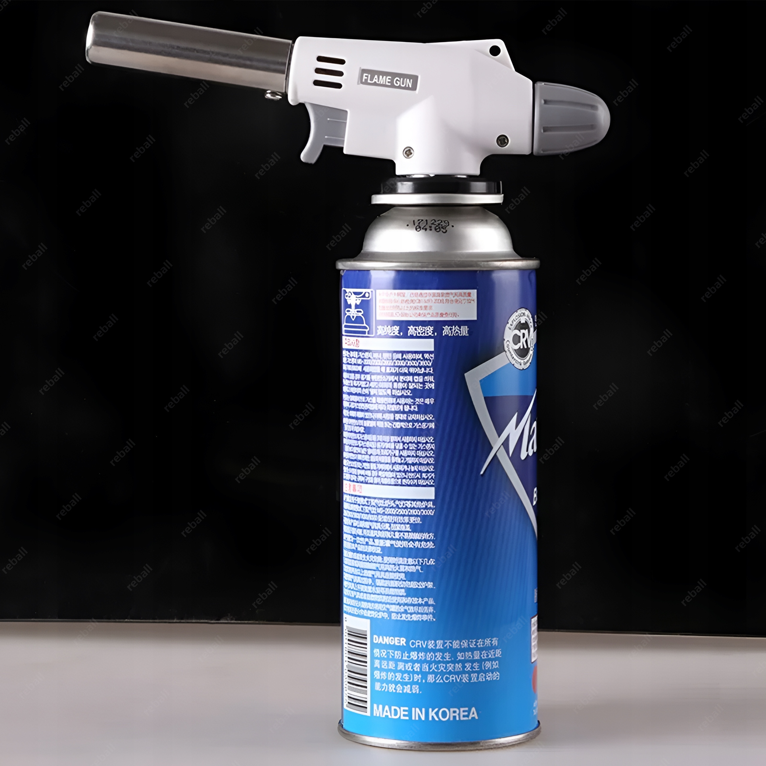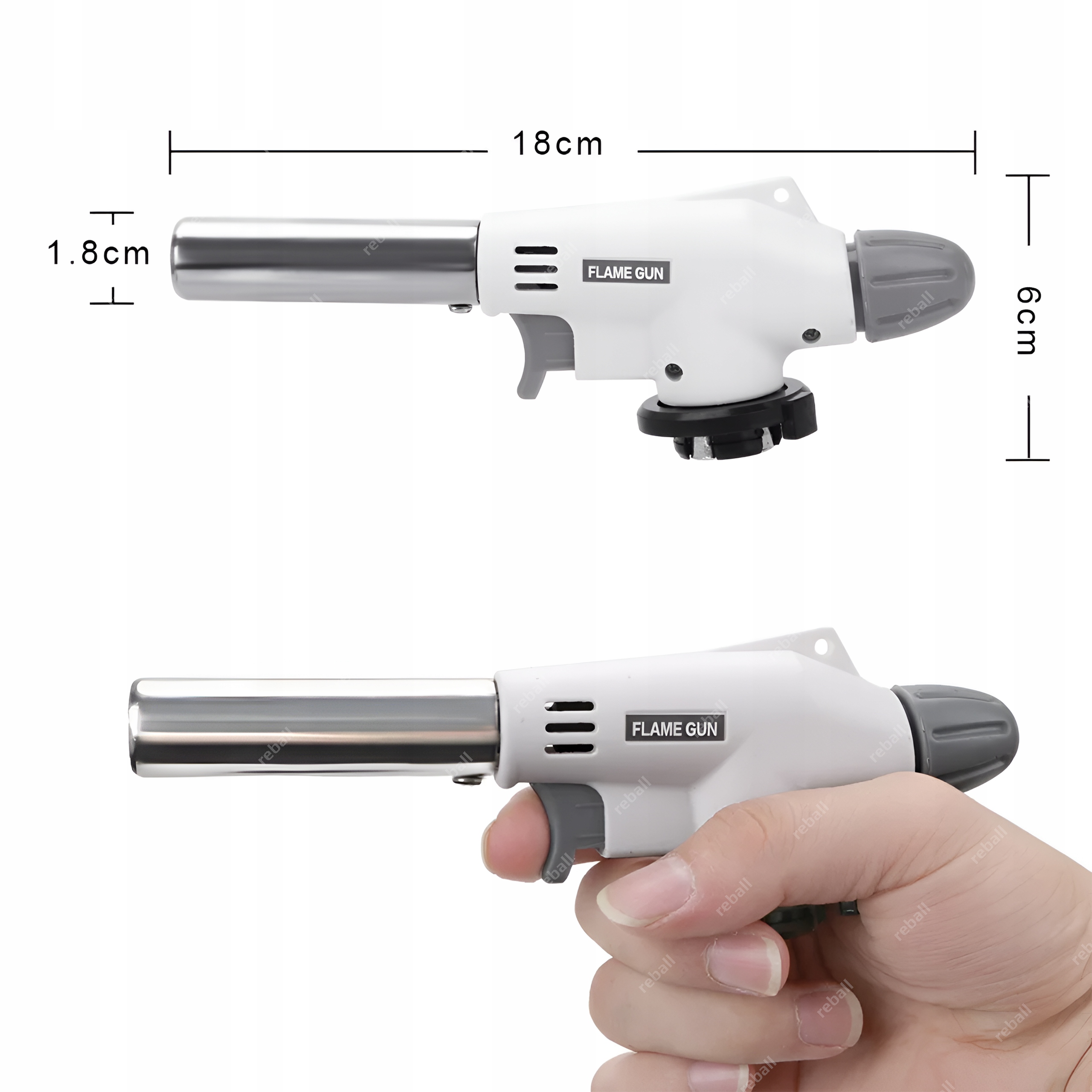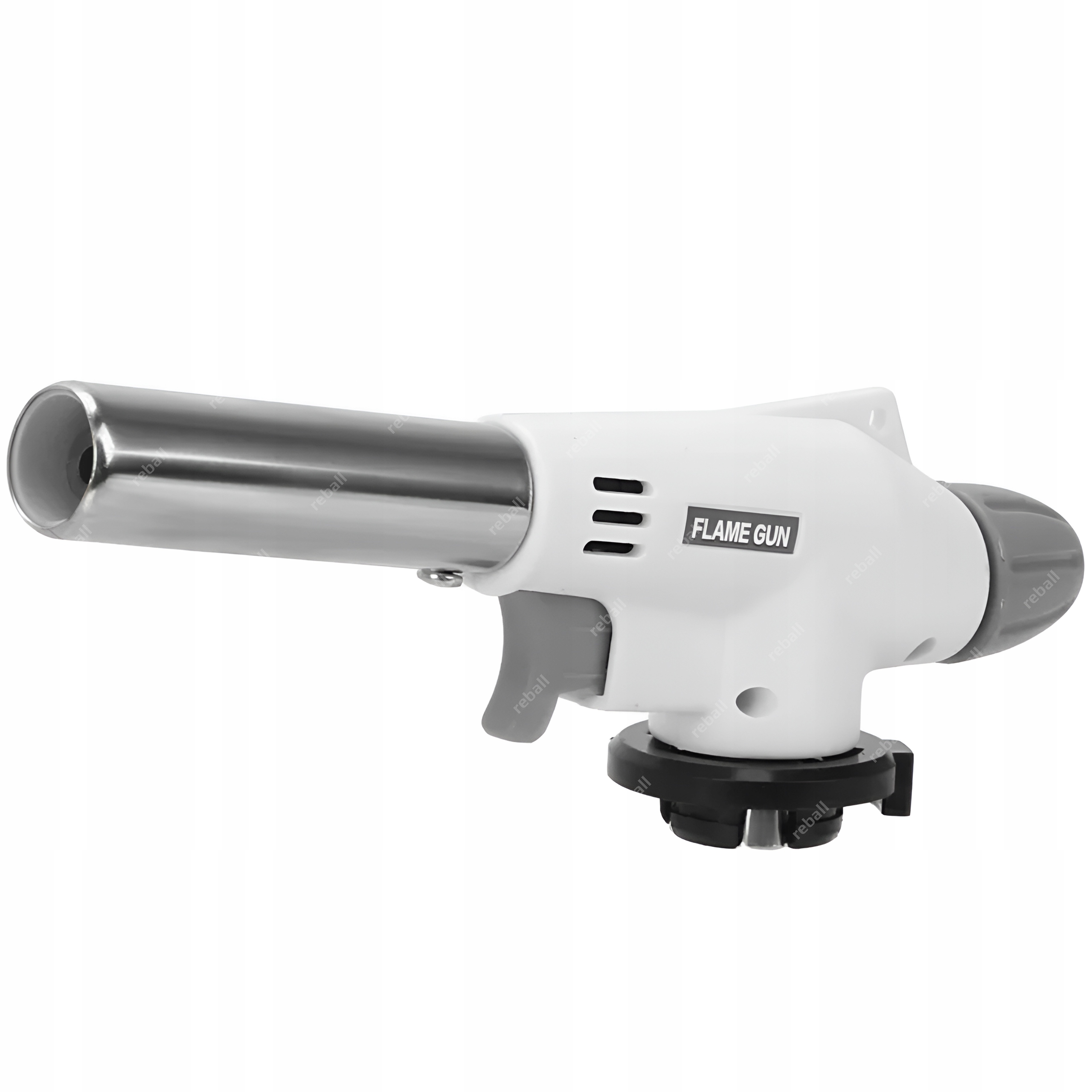 Łatwy w obsłudze, wykonany z trwałego tworzywa i metalu. Wyposażony w metalowy zawór oraz pokrętło do regulacji intensywności płomienia.