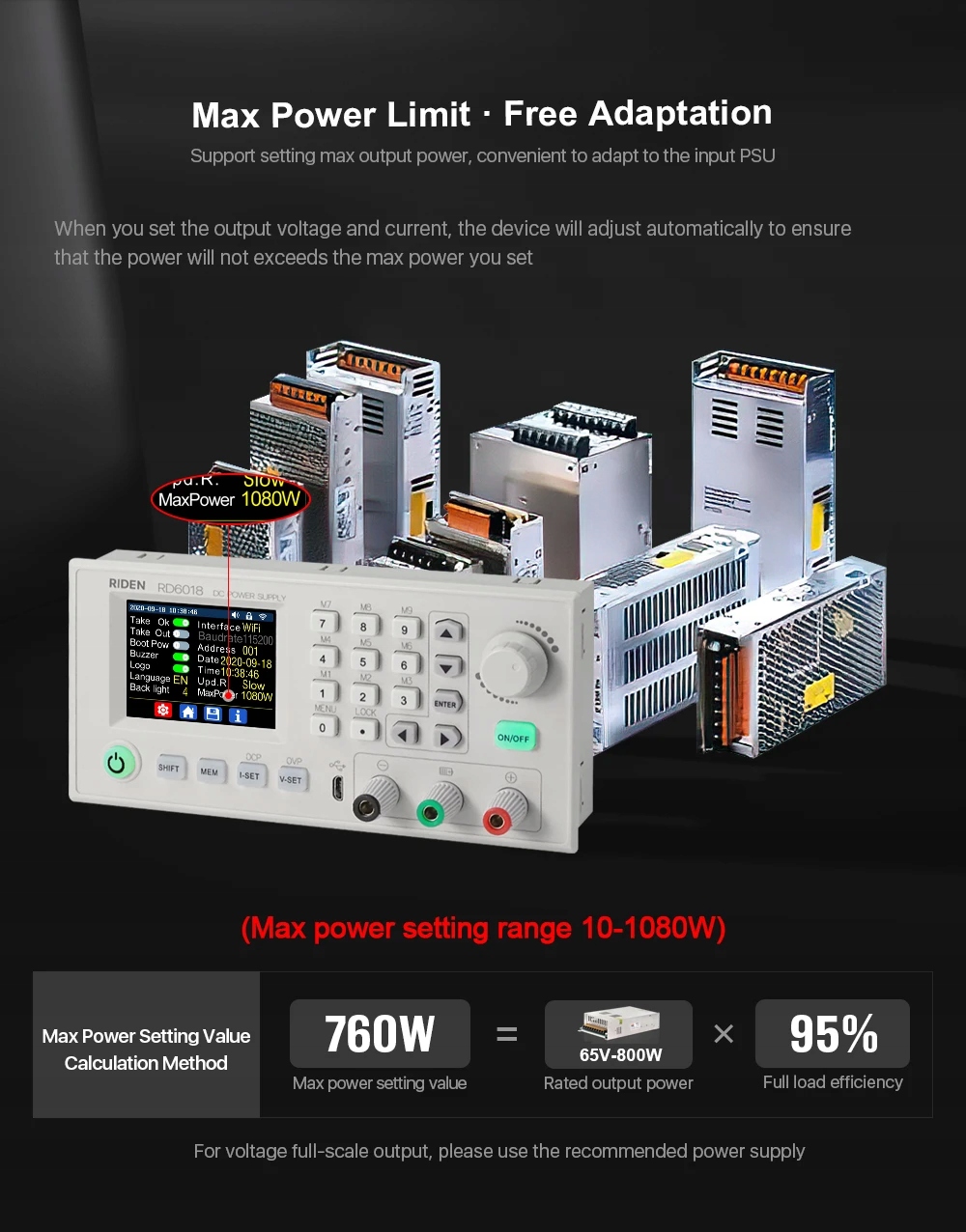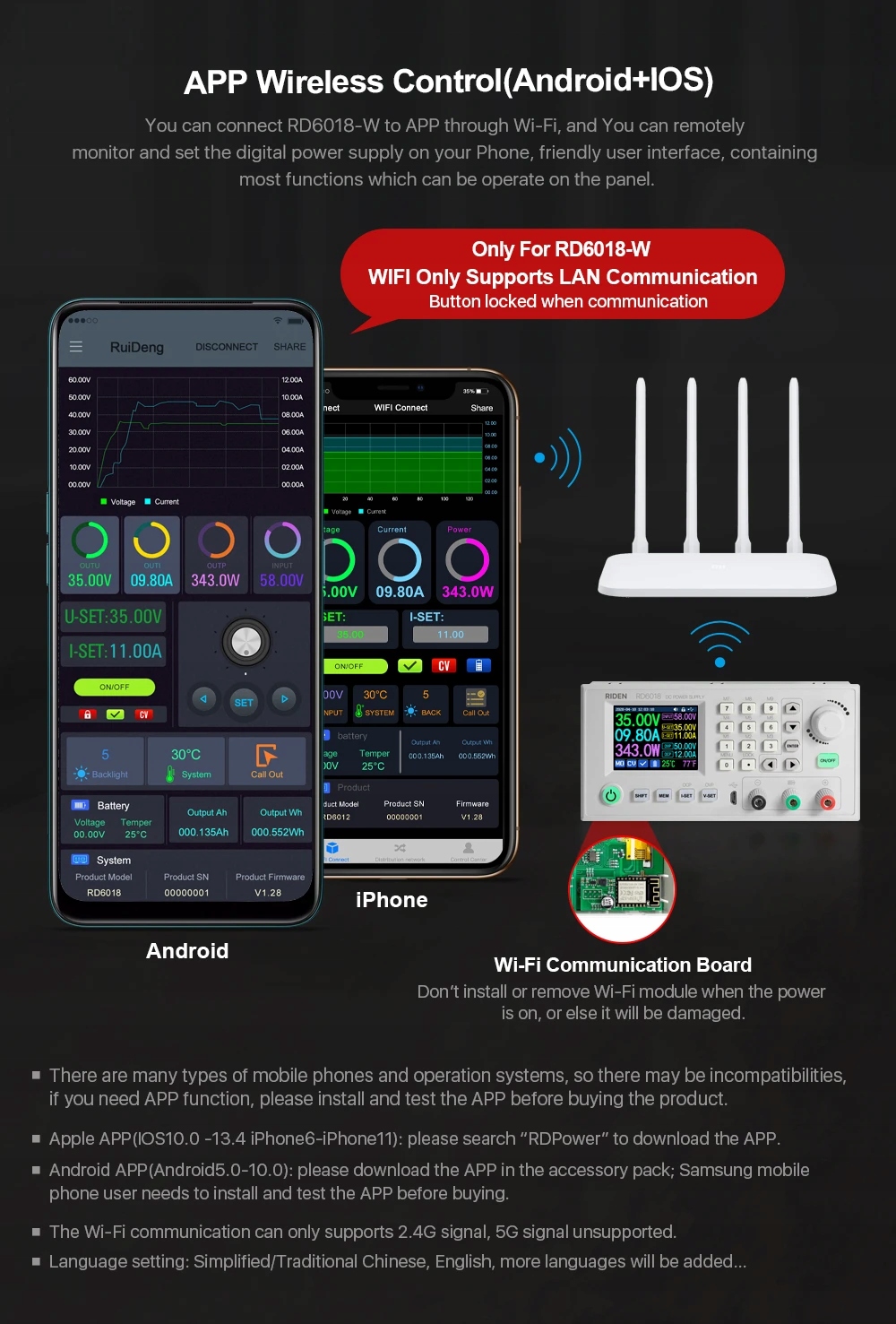 Moduł zasilacza obniżającego napięcie RIDEN RD6018-W 1080W który umożliwia: