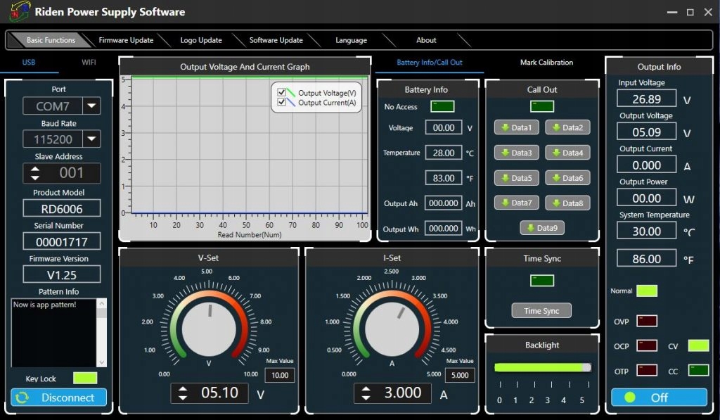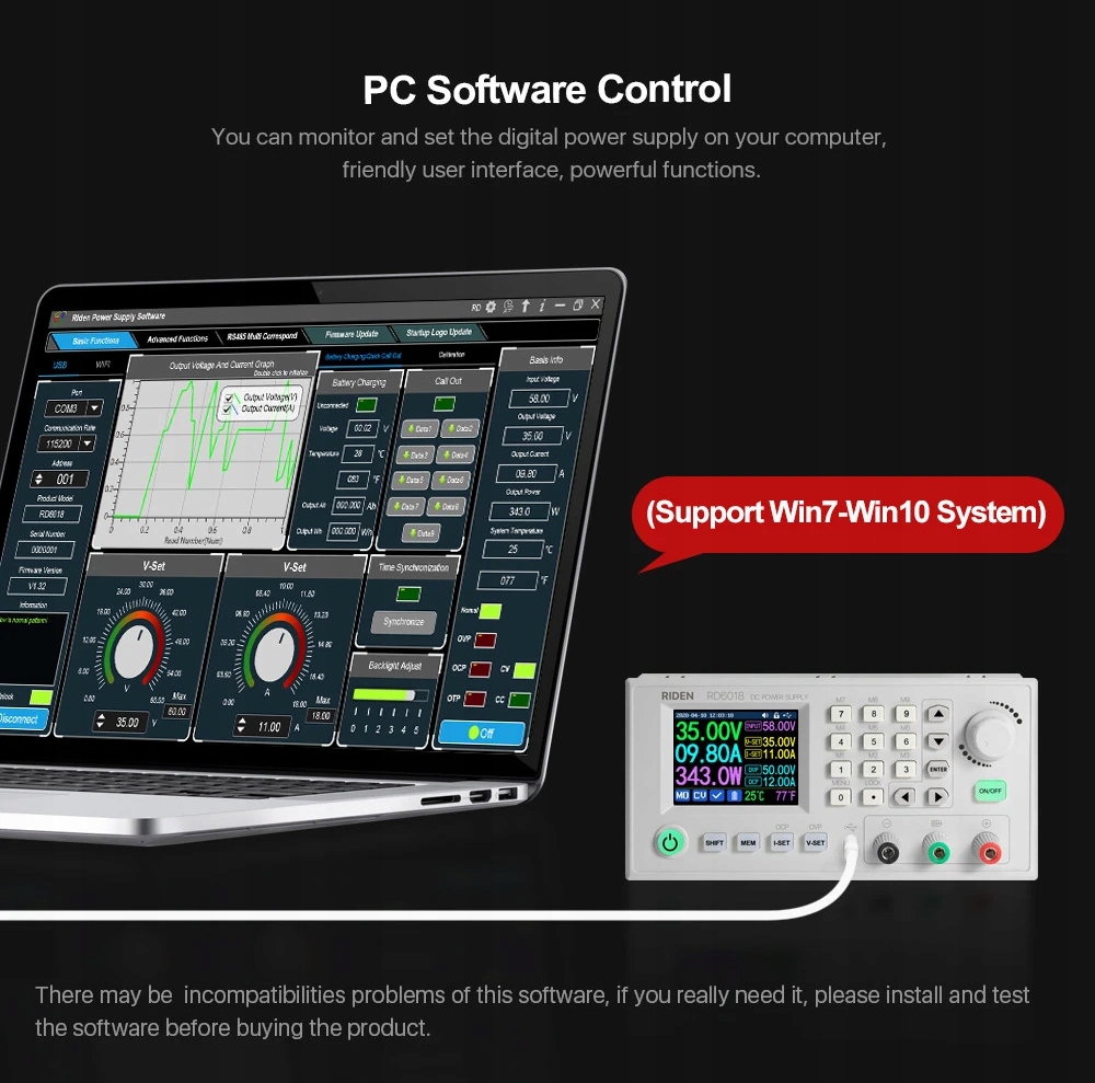 Darmowa aplikacja producenta umożliwia zdalne sterowanie zasilaczem bez konieczności dostępu do urządzenia. Podczas gdy zasilacz jest podłączony pod komputer możliwa jest jedynie zmian parametrów za pomocą zainstalowanej aplikacji. Przyciski funkcyjne są nieaktywne.