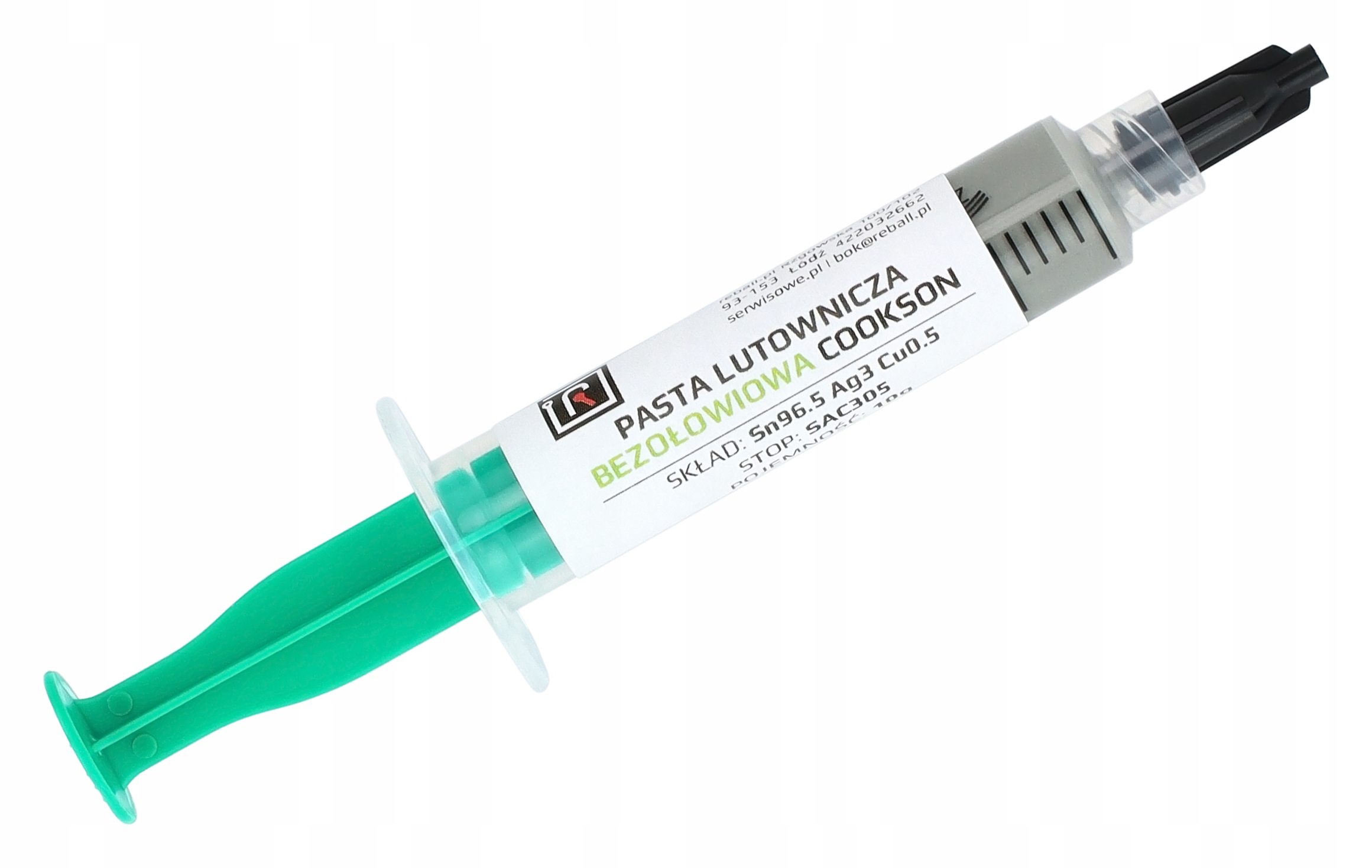 Pasta lutownicza bezołowiowa REBALL Sn96.5 Ag3 Cu0.5 (cynowo-srebrno-miedziana) przeznaczona do szerokiego zakresu zastosowań.