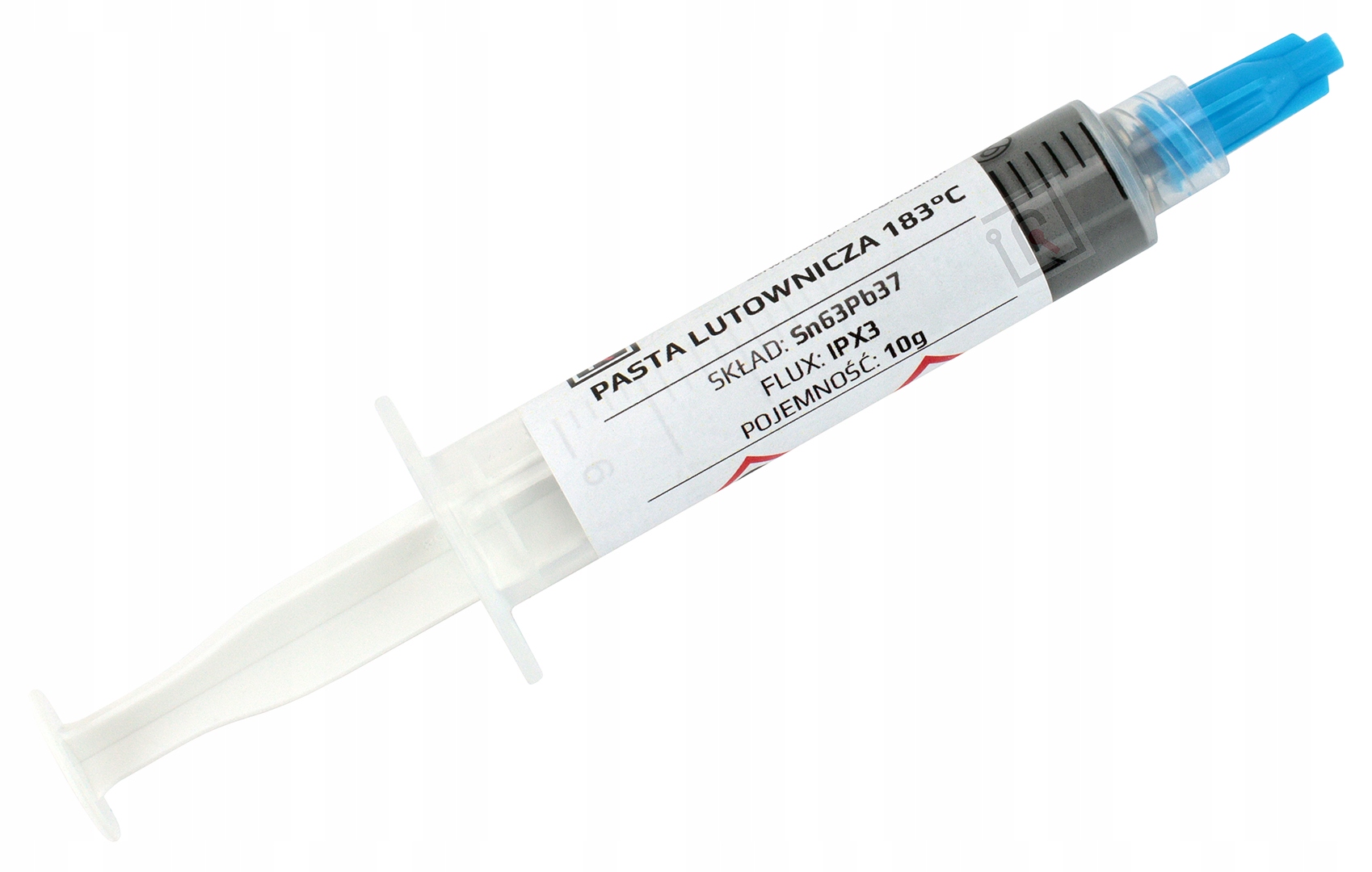 Pasta lutownicza Sn63/Pb37 (z zawartością ołowiu) "płynna cyna", stosowana do lutowania małych i trudno dostępnych elementów SMD oraz wymiany kulek na układach BGA.