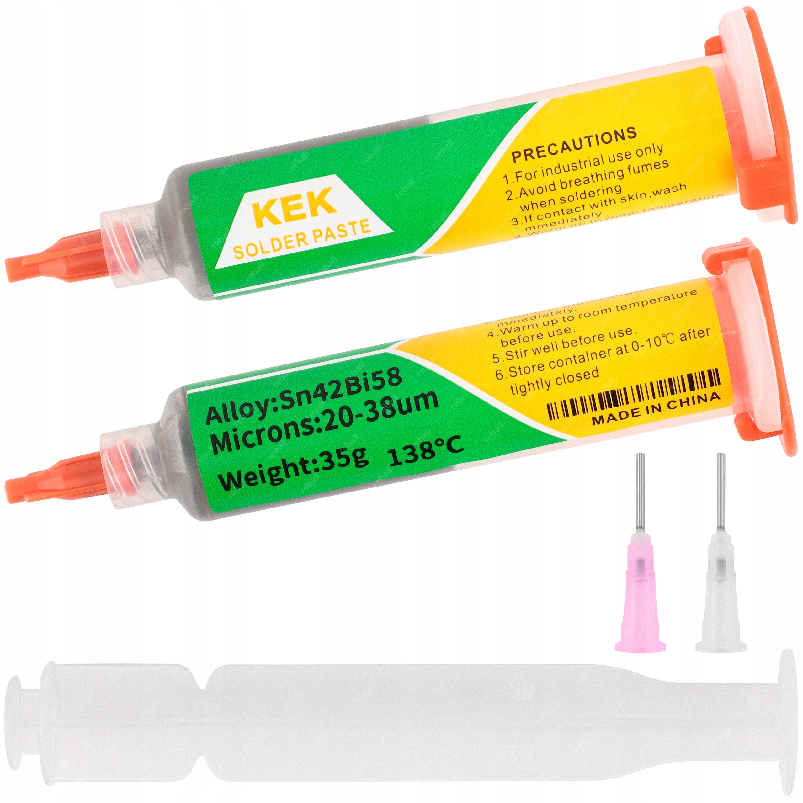 PASTA LUTOWNICZA PŁYNNA CYNA KEK 35g BIZMUTOWA Sn42/Bi58 138°C + DWIE IGŁY