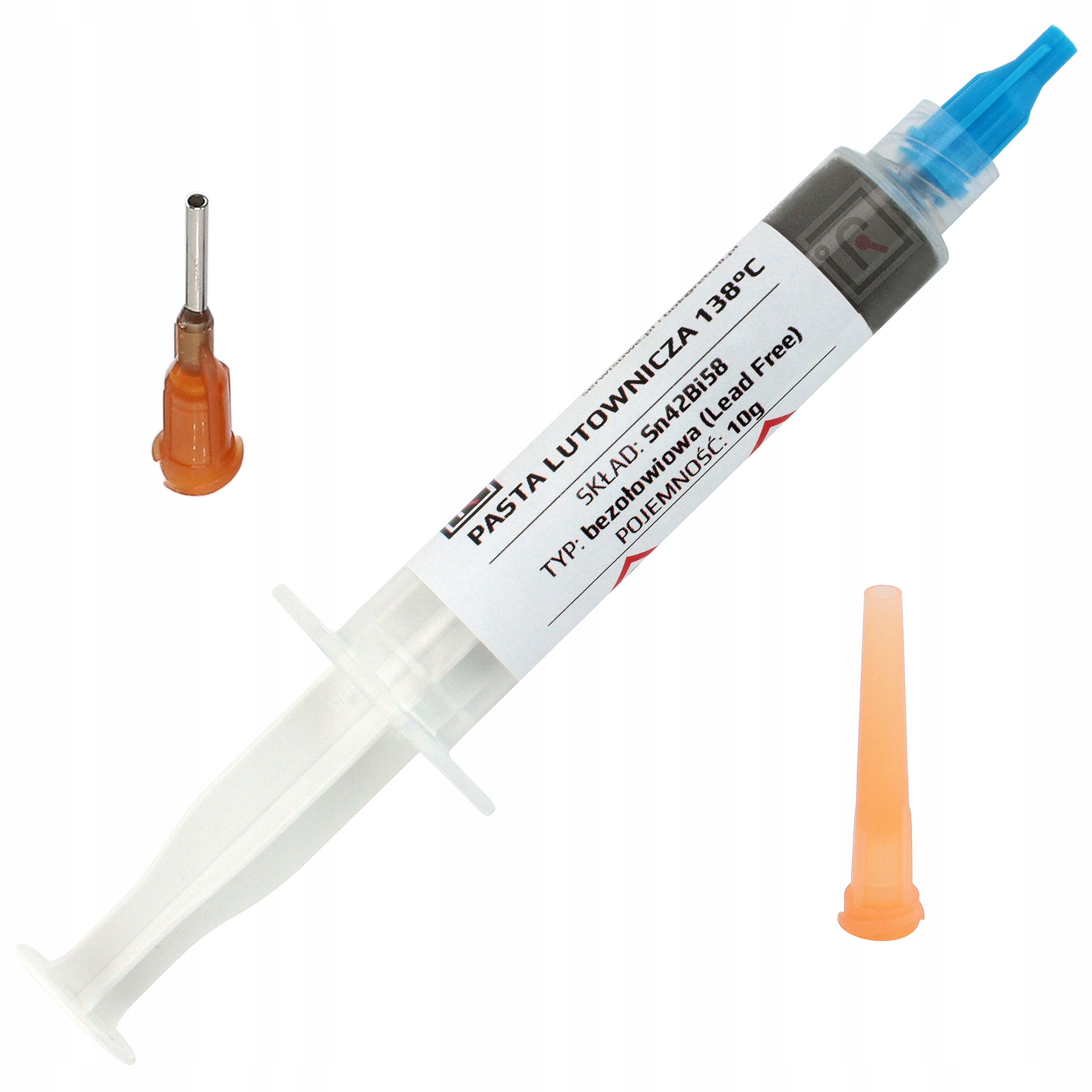 PASTA LUTOWNICZA Sn42Bi58 10g BEZOŁOWIOWA NISKOTEMPERATUROWA 138°C +2x IGŁA