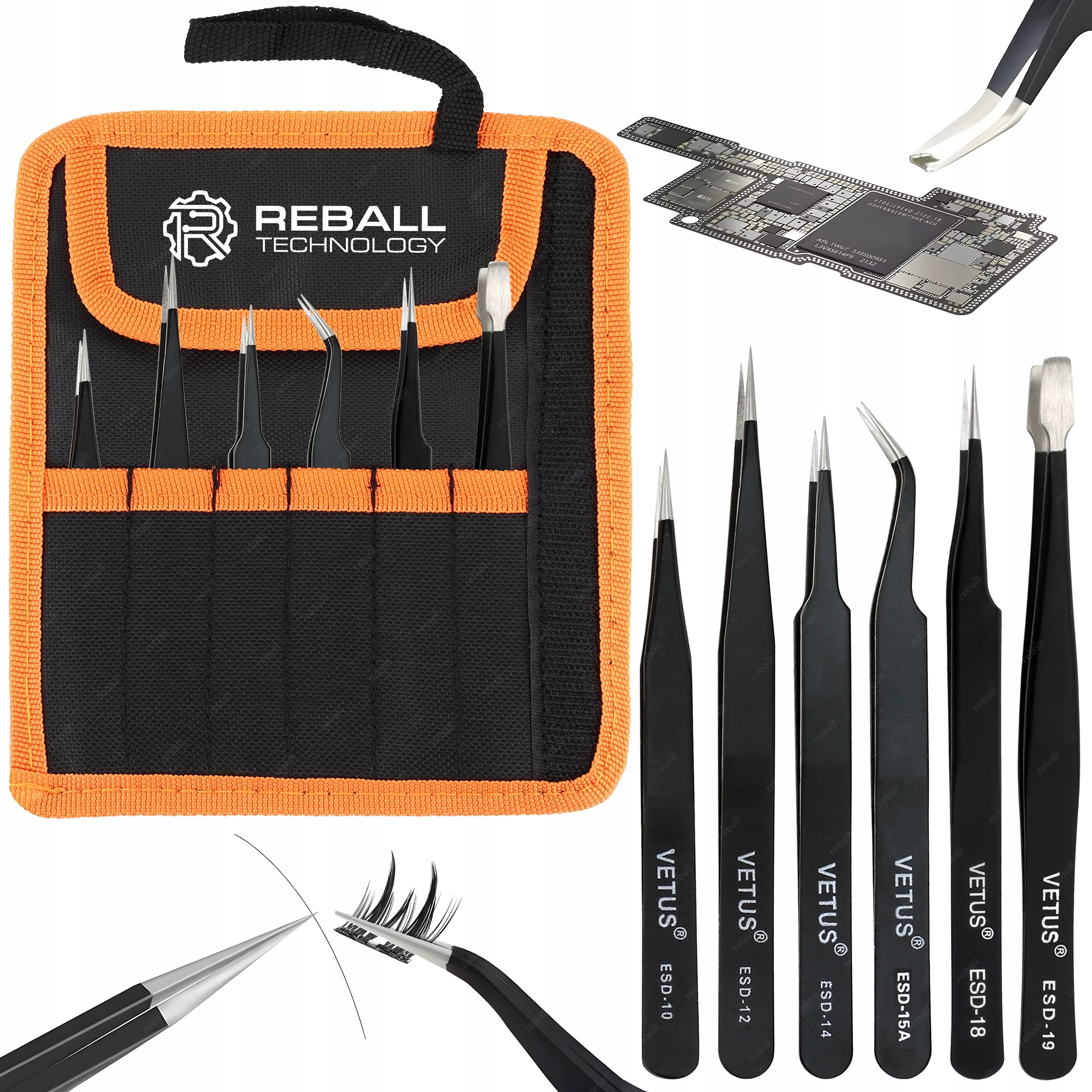 Firmowy zestaw pęset firmy Vetus, w praktycznym etui Reball Technology to doskonały komplet narzędzi precyzyjnych.